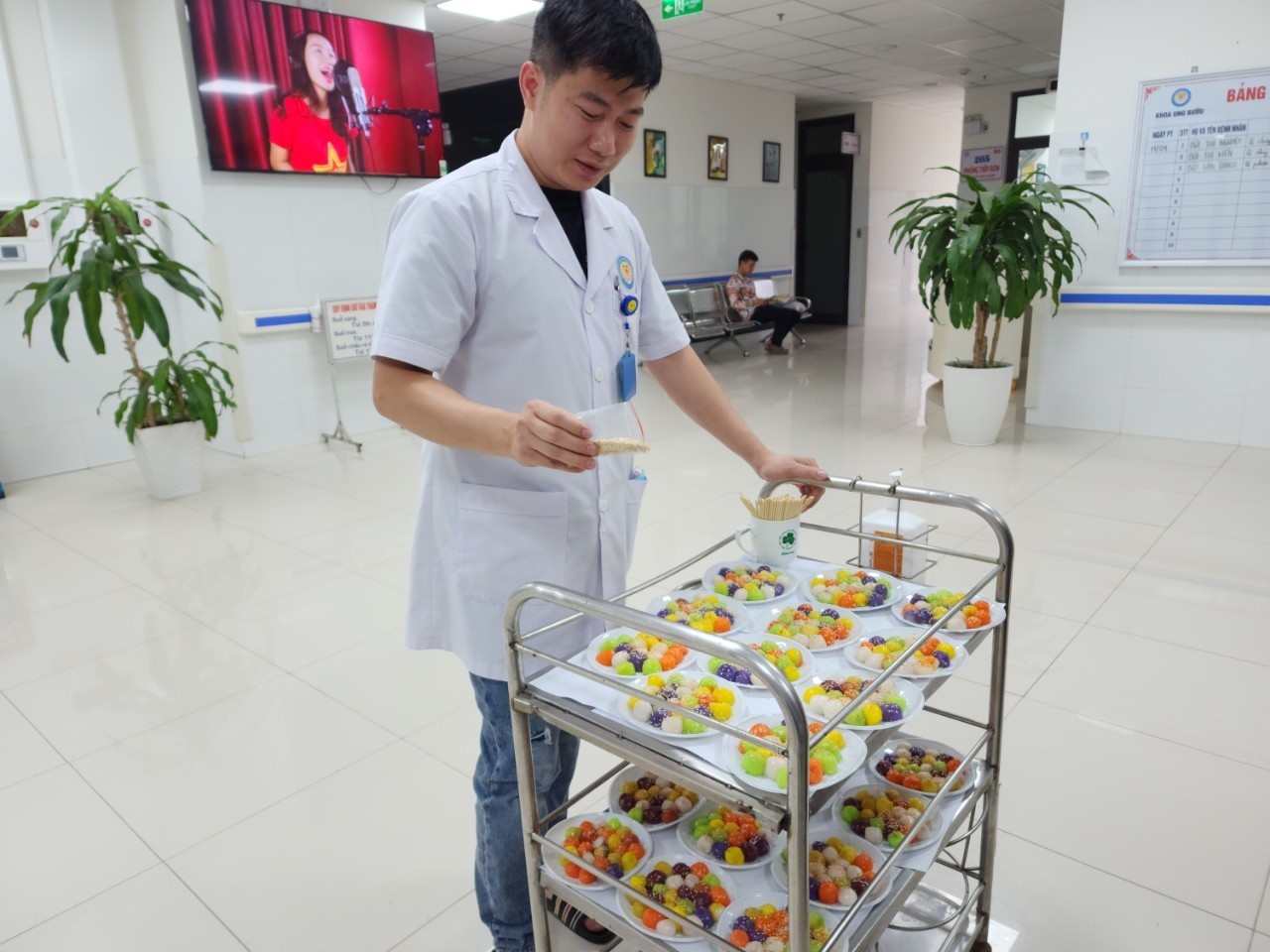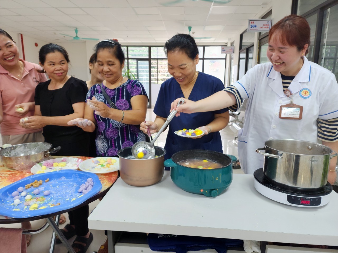 Nhân viên y tế và người nhà cùng chuẩn bị cho ngày Tết Hàn thực tại khoa Ung bướu
