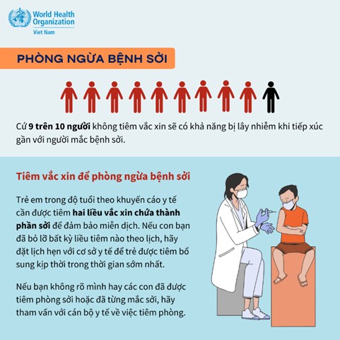 Trẻ em trong độ tuổi theo khuyến cáo y tế cần được tiêm hai liều vắc xin chứa thành phần sởi để đảm bảo miễn dịch. Nếu con bạn đã bỏ lỡ bất kỳ liều tiêm nào theo lịch, hãy đặt lịch hẹn với cơ sở y tế để trẻ được tiêm bổ sung kịp thời trong thời gian sớm nhất.
