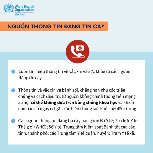 Thông tin về vắc xin và bệnh sởi, chẳng hạn như các triệu chứng và cách điều trị, từ nguồn không chính thống trên mạng xã hội có thể không dựa trên bằng chứng khoa học và khiến con bạn có nguy cơ gặp các biến chứng sức khỏe nghiêm trọng.