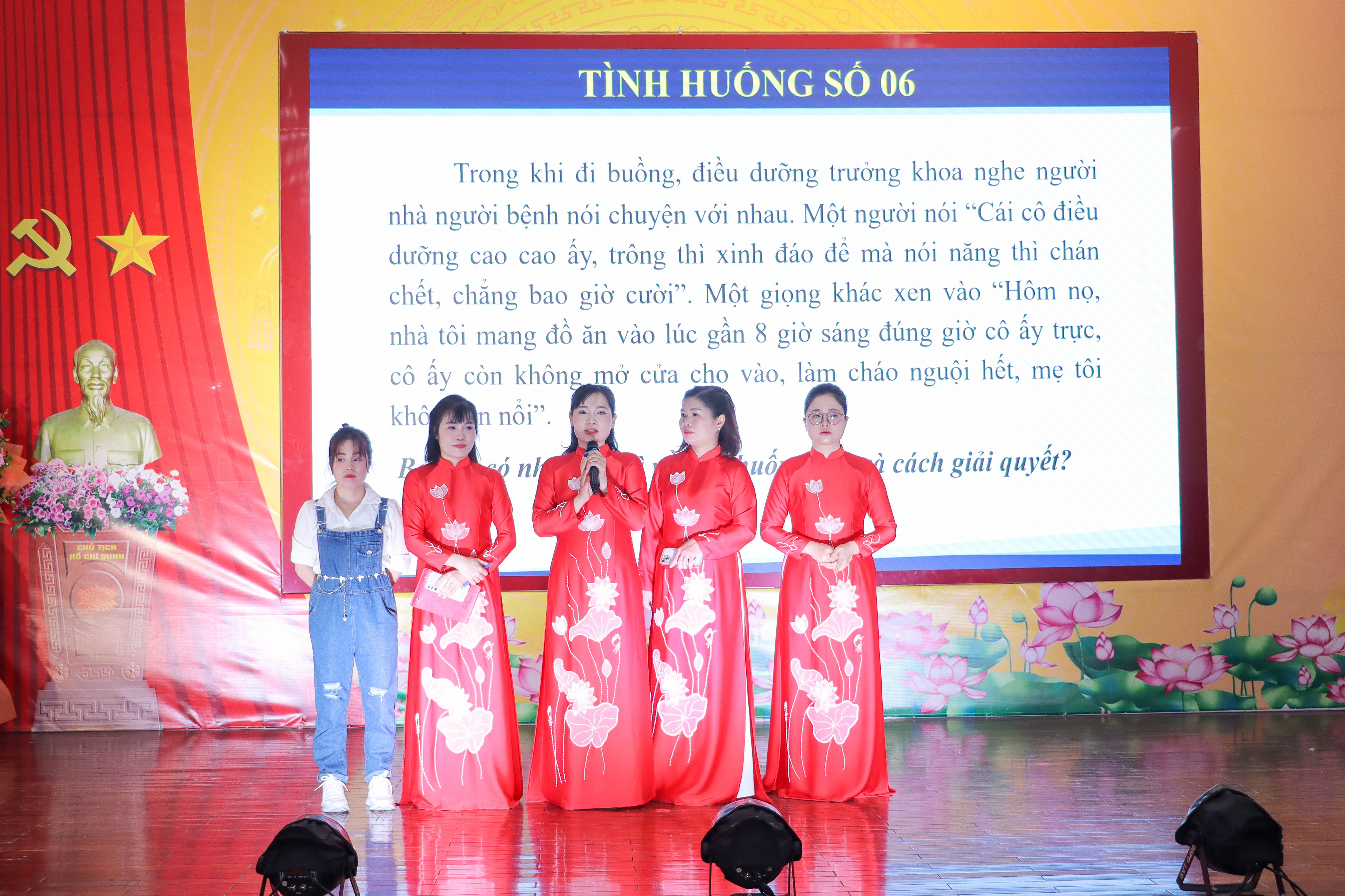 9 đội thi đến từ các khoa lâm sàng và cận lâm sàng đã cùng nhau tranh tài qua 3 phần thi hấp dẫn: Chào hỏi – Thuyết trình truyền thông – Xử lý tình huống.