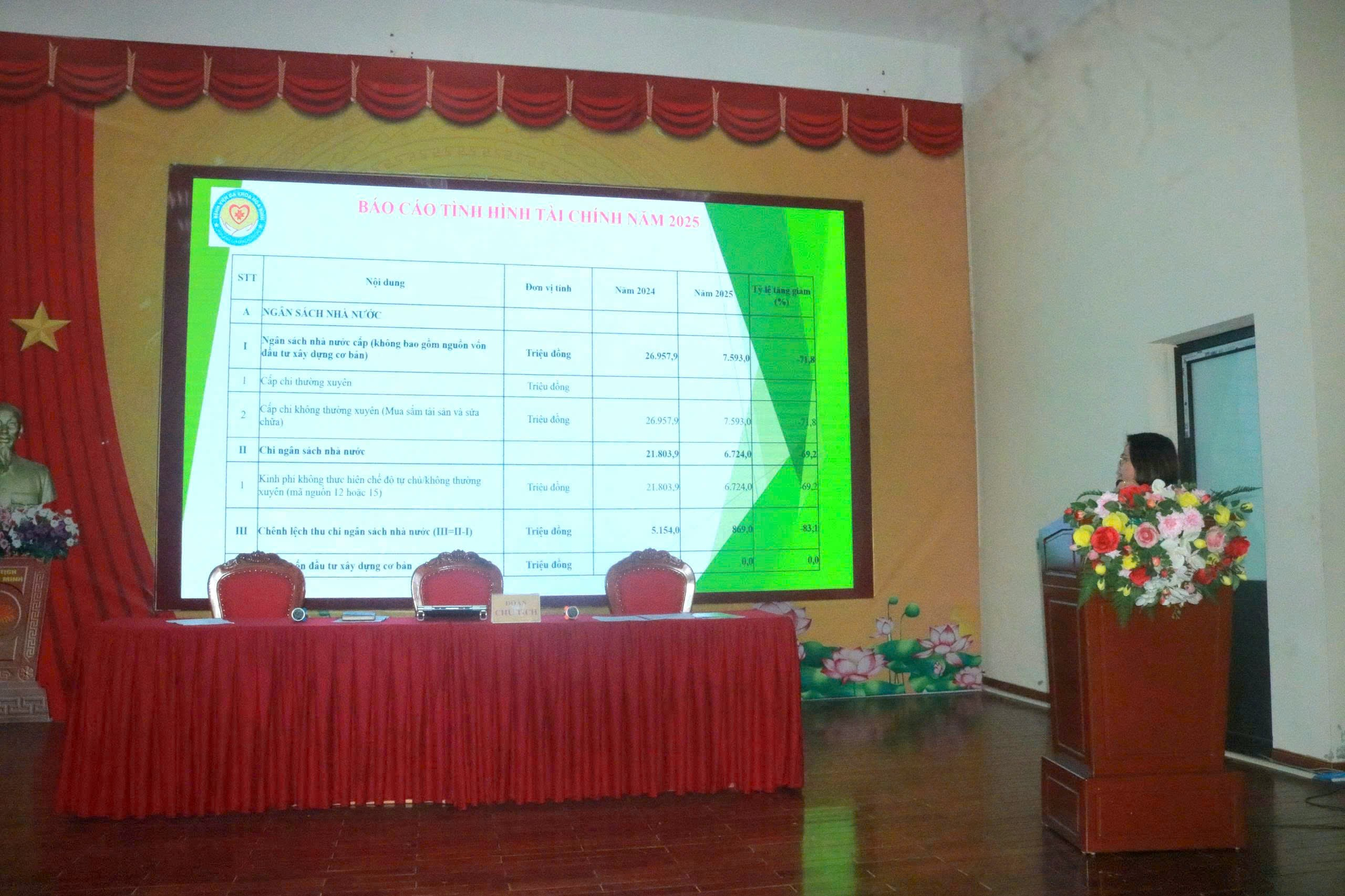 Hội nghị đã thông qua Báo cáo Tổng kết công tác tài chính năm 2025. Đồng thời, lấy ý kiến của cán bộ, viên chức, người lao động về Quy chế chi tiêu nội bộ năm 2026.