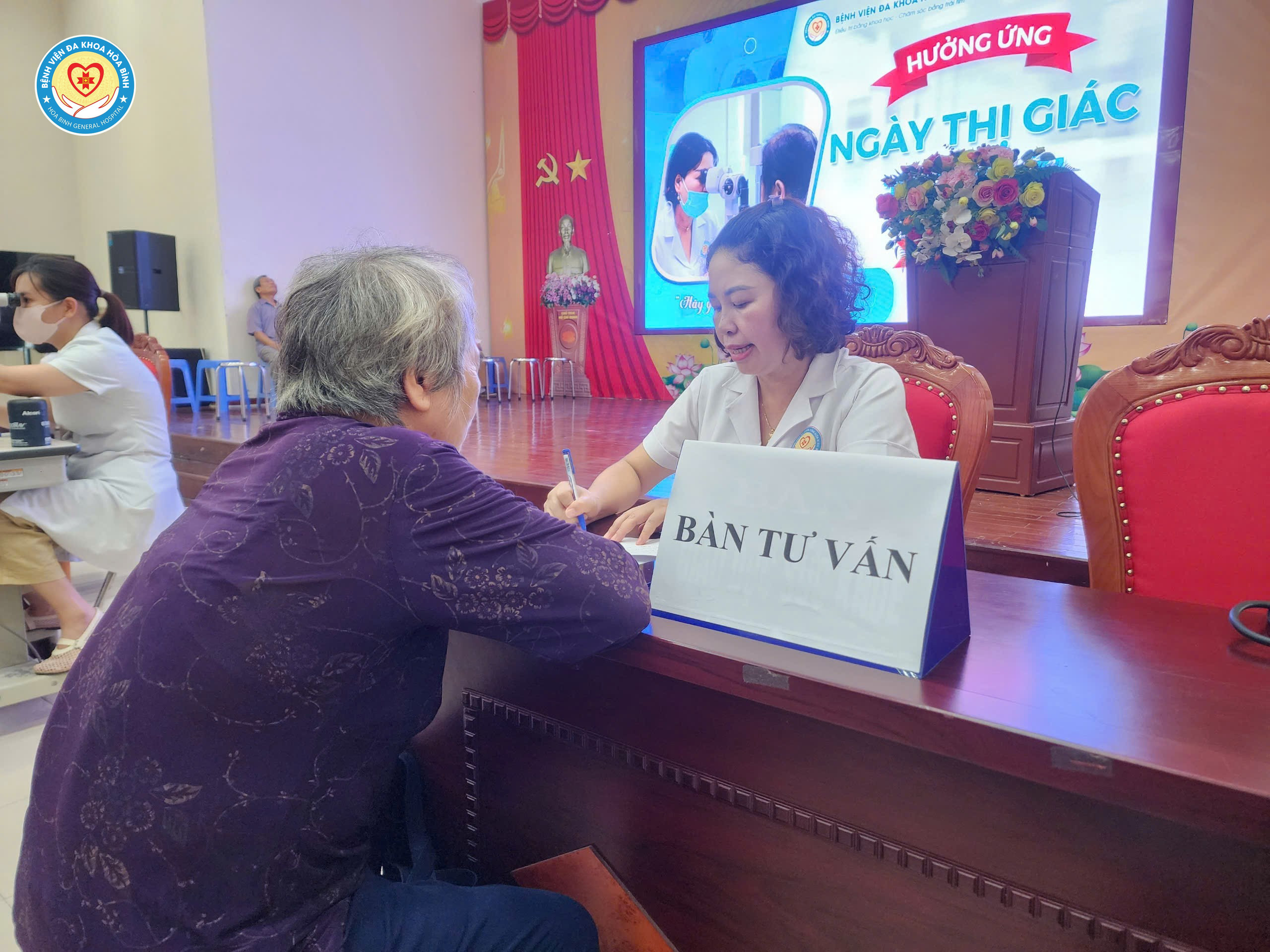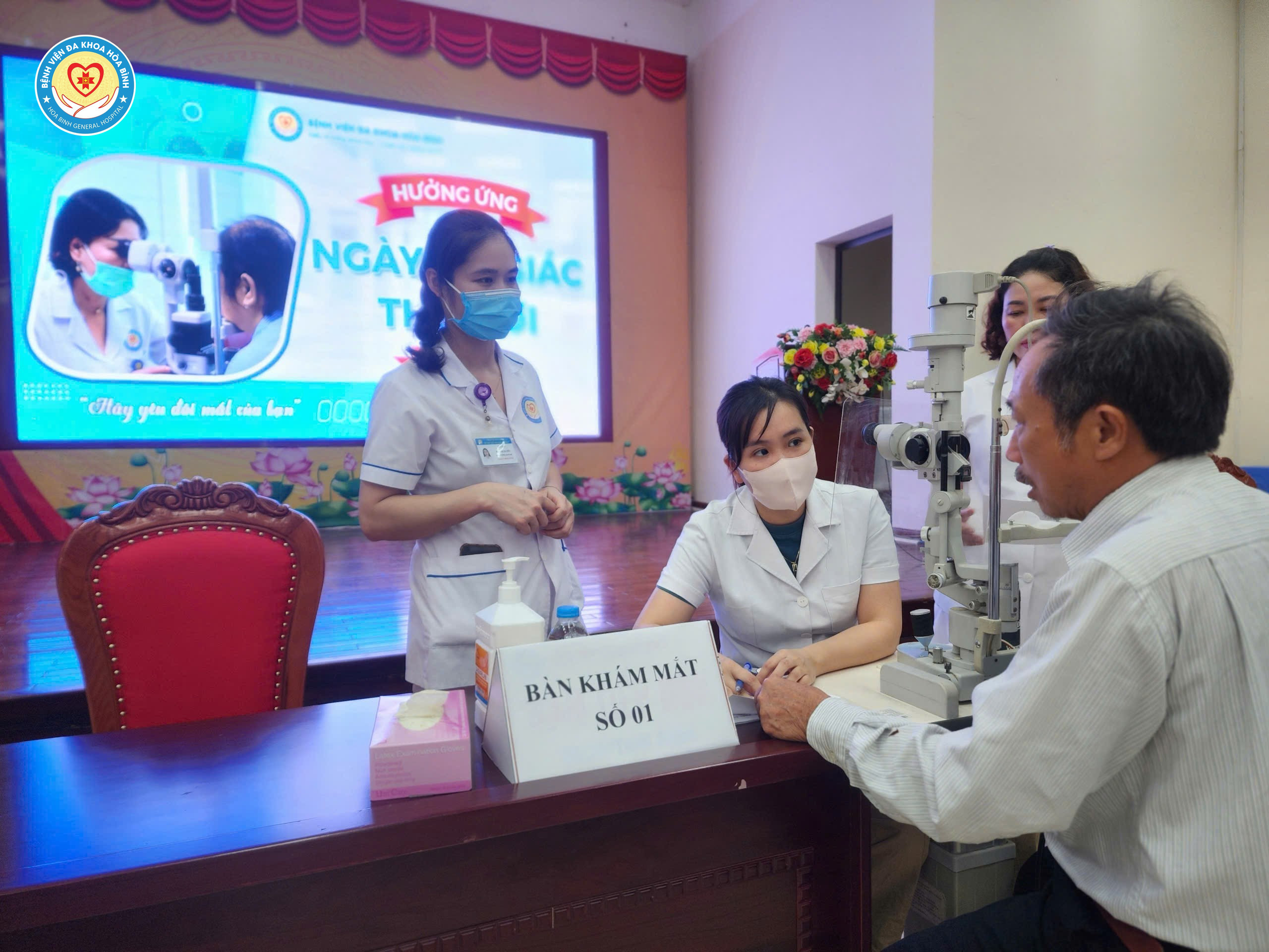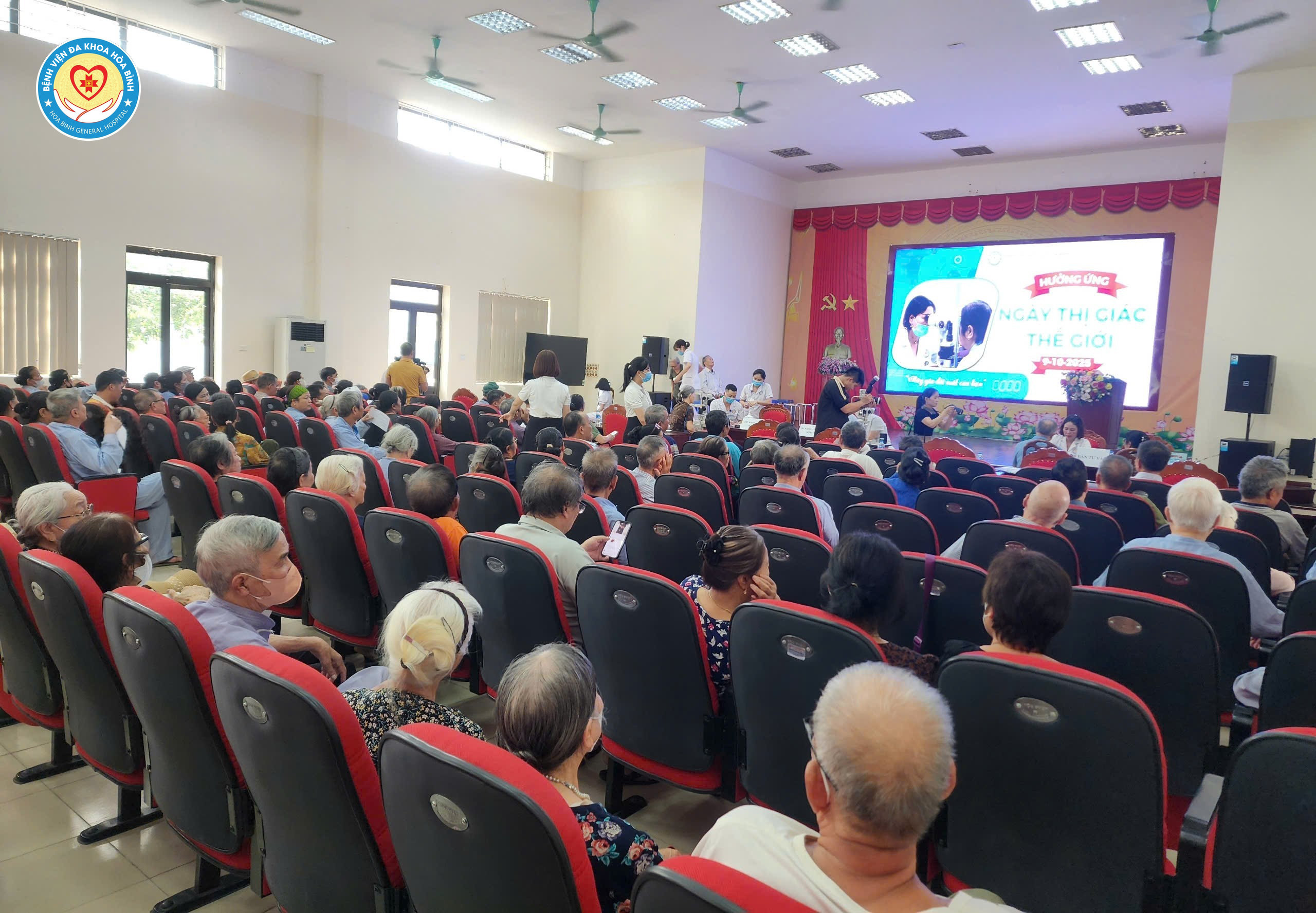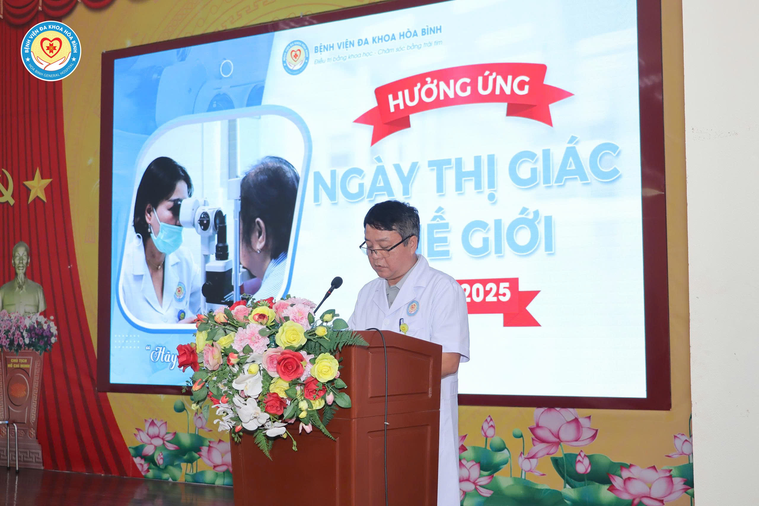 Ngày 9/10, Bệnh viện Đa khoa Hoà Bình tổ chức Chương trình tầm soát các bệnh về mắt hưởng ứng Ngày Thị giác thế giới năm 2025. Tham dự chương trình có BS.CKII Nguyễn Quốc Phương, Phó Giám đốc Bệnh viện, lãnh đạo các khoa, phòng và đông đảo người dân và bệnh nhân điều trị nội trú tại Bệnh viện Đa khoa Hoà Bình.
