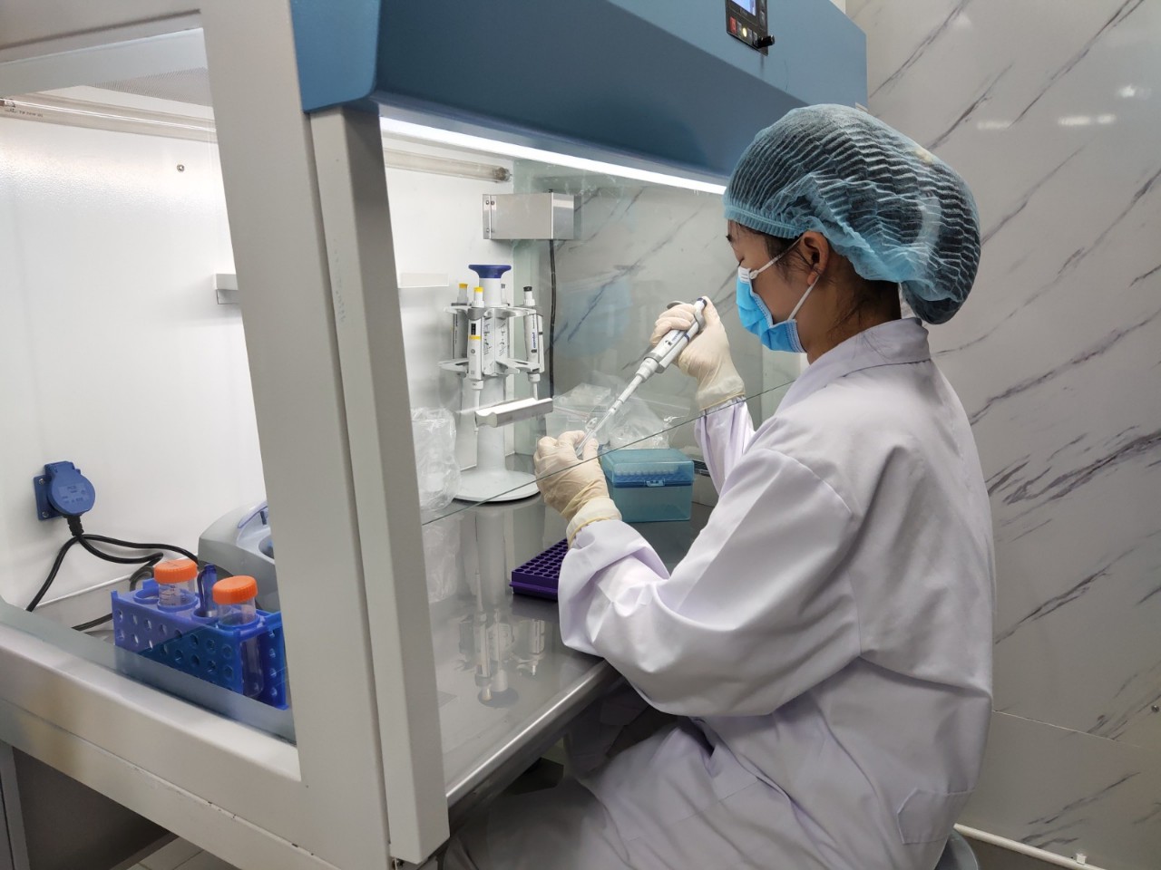 Nhân viên y tế đang tách chiết ARN để thu vật liệu di truyền
