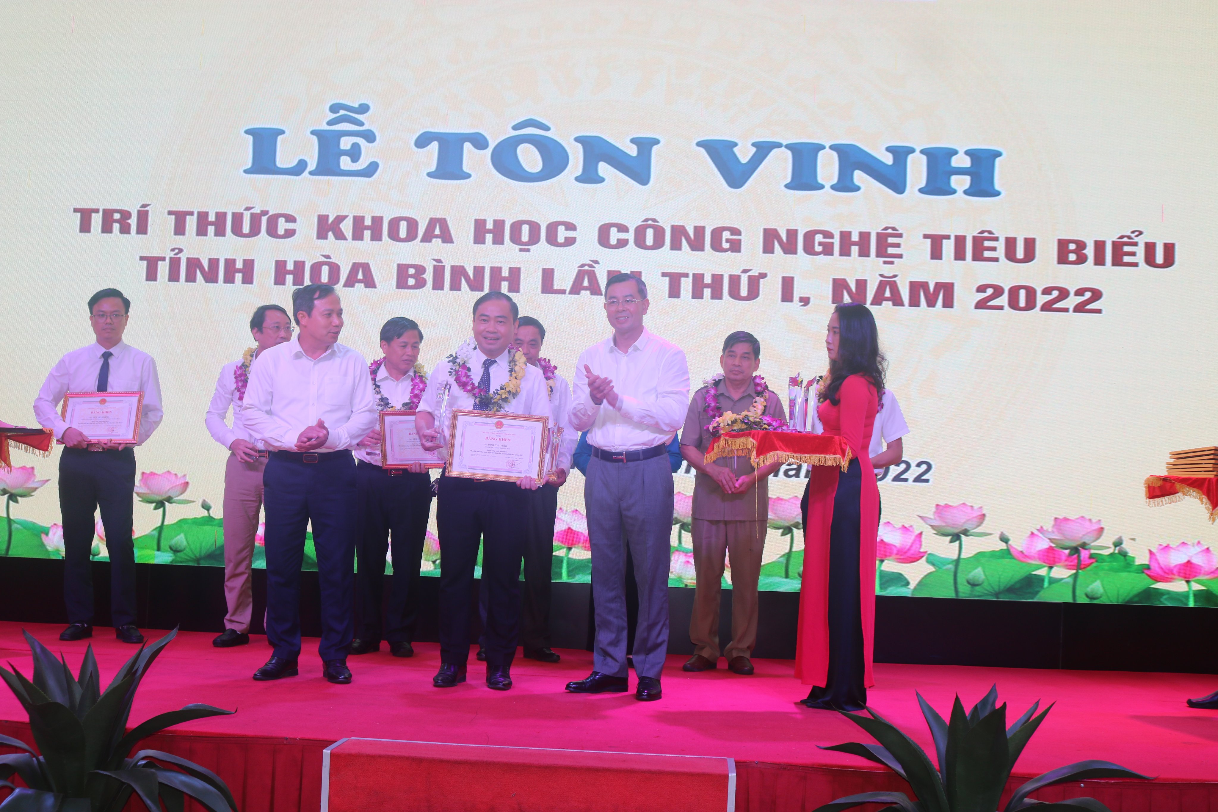 Phát biểu tại buổi lễ, đồng chí Ngô Văn Tuấn, Bí thư Tỉnh ủy chúc mừng các trí thức được tôn vinh trong buổi lễ. Đồng thời nhấn mạnh vai trò và tầm quan trọng của đội ngũ trí thức trong sự phát triển của tỉnh Hoà Bình. Việc tổ chức Lễ tôn vinh lần này không chỉ nhằm tôn vinh 20 trí thức tiêu biểu tỉnh Hoà Bình mà còn khơi dậy khát vọng của mỗi người dân trong xã hội tiếp tục học tập, phát triển, đóng góp vào sự phát triển của tỉnh nhà. Đồng chí Bí thư Tỉnh ủy mong muốn, từng cá nhân trí thức tiếp tục học tập, phát huy tri thức có được cho sự nghiệp phát triển của đơn vị, của ngành và của tỉnh; tích cực tuyên truyền đường lối, chính sách của Đảng, Nhà nước, tham gia các phong trào thi đua, đi đầu trong các hoạt động nghiên cứu khoa học. Đối với cấp ủy chính quyền, đồng chí Bí thư Tỉnh ủy đề nghị cần tiếp tục quan tâm, chăm lo cho đội ngũ cán bộ trí thức để phát triển, bồi dưỡng đội ngũ này trong tương lai; chú trọng công tác giáo dục, đặc biệt là giáo dục mũi nhọn; có nhiều chính sách thu hút nhân tài. Đồng thời, công tác tổ chức vinh danh có thể nghĩ tới việc mở rộng đối tượng, không chỉ là đội ngũ trí thức trong tỉnh mà còn vinh danh đội ngũ trí thức tiêu biểu là những người con của tỉnh Hoà Bình trên khắp cả nước. Cuối cùng, đồng chí Bí thư Tỉnh ủy mong muốn, thời gian tới, tỉnh ủy và các cấp ủy chính quyền sẽ nâng cao hơn nữa công tác phối hợp để cùng chăm lo, phát triển đội ngũ cán bộ, trí thức tỉnh nhà thời gian tới sẽ phát triển ngang tầm thời đại.