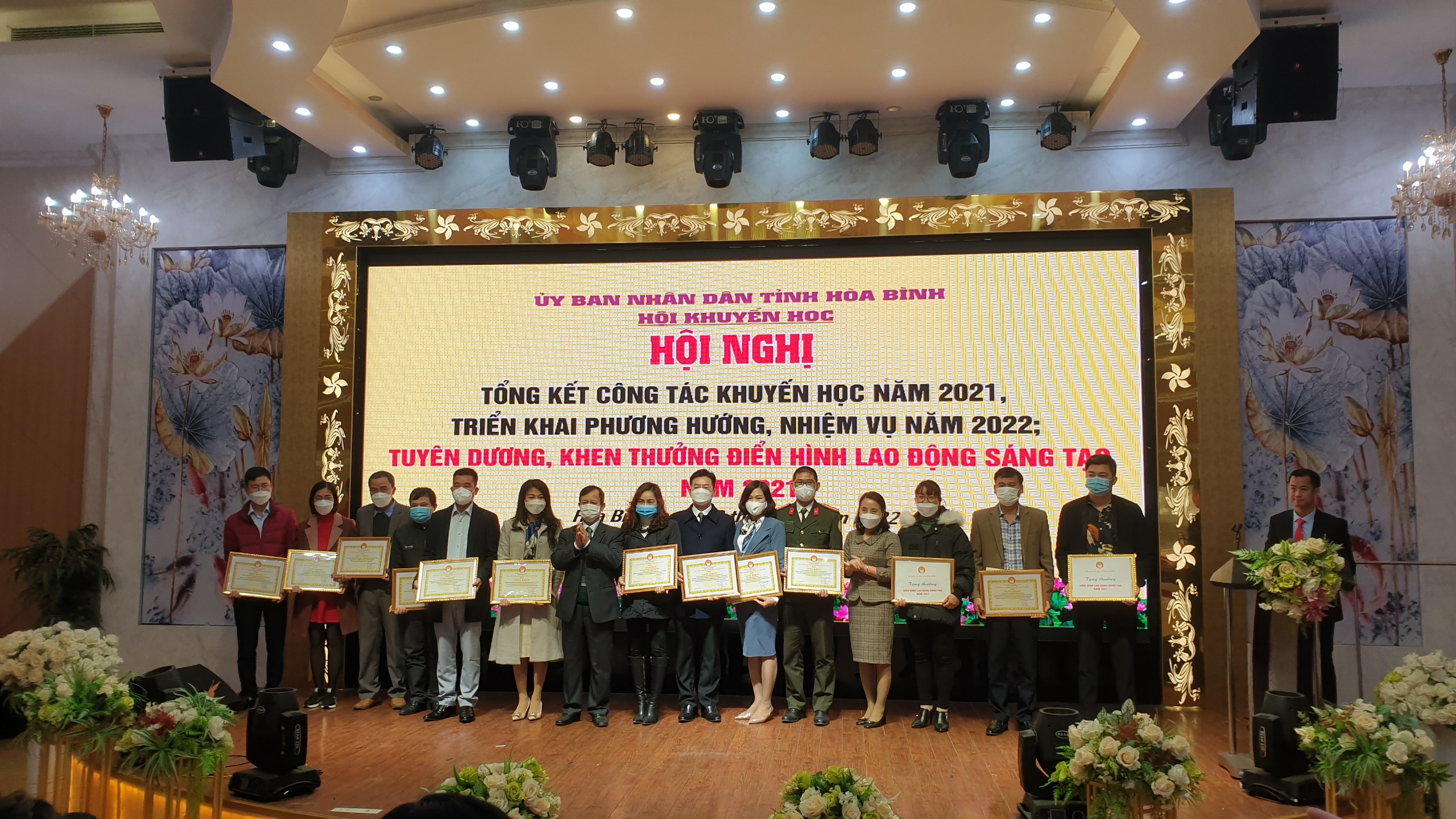 Đại diện Bệnh viện Đa khoa tỉnh Hoà Bình nhận Giấy khen tại Hội nghị tổng kết công tác khuyến học năm 2021