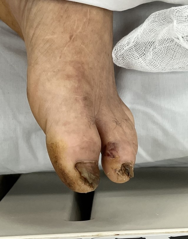 Bệnh nhân thở máy và hình ảnh vết thương bàn chân gây uốn ván