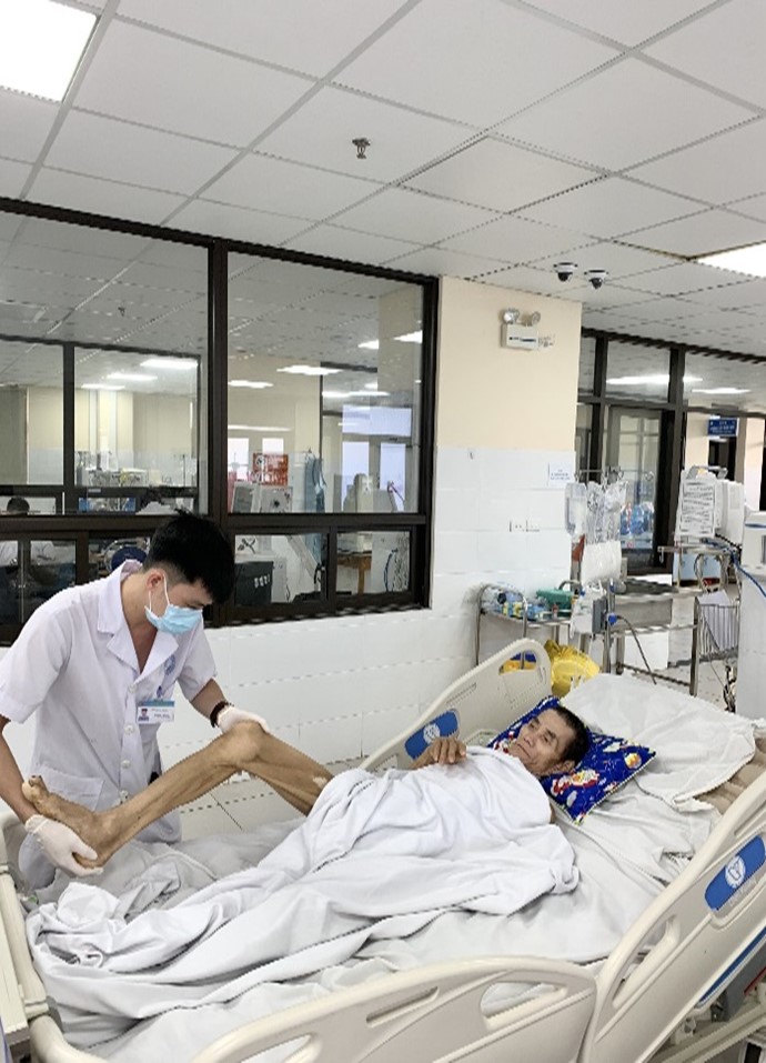 Trong hơn 1 tháng điều trị, chăm sóc tích cực bằng: thở máy, lọc máu, kháng sinh, dùng thuốc trung hòa độc tố uốn ván, tập phục hồi chức năng, với sự phối hợp của nhiều chuyên khoa, sức khỏe của bệnh nhân được hồi phục. Bệnh nhân cai được máy thở, rút được ống mở khí quản, ăn uống và đi lại được. Trong tuần vừa qua, bệnh nhân đã được xuất viện trong sự vui mừng của tất cả mọi người.