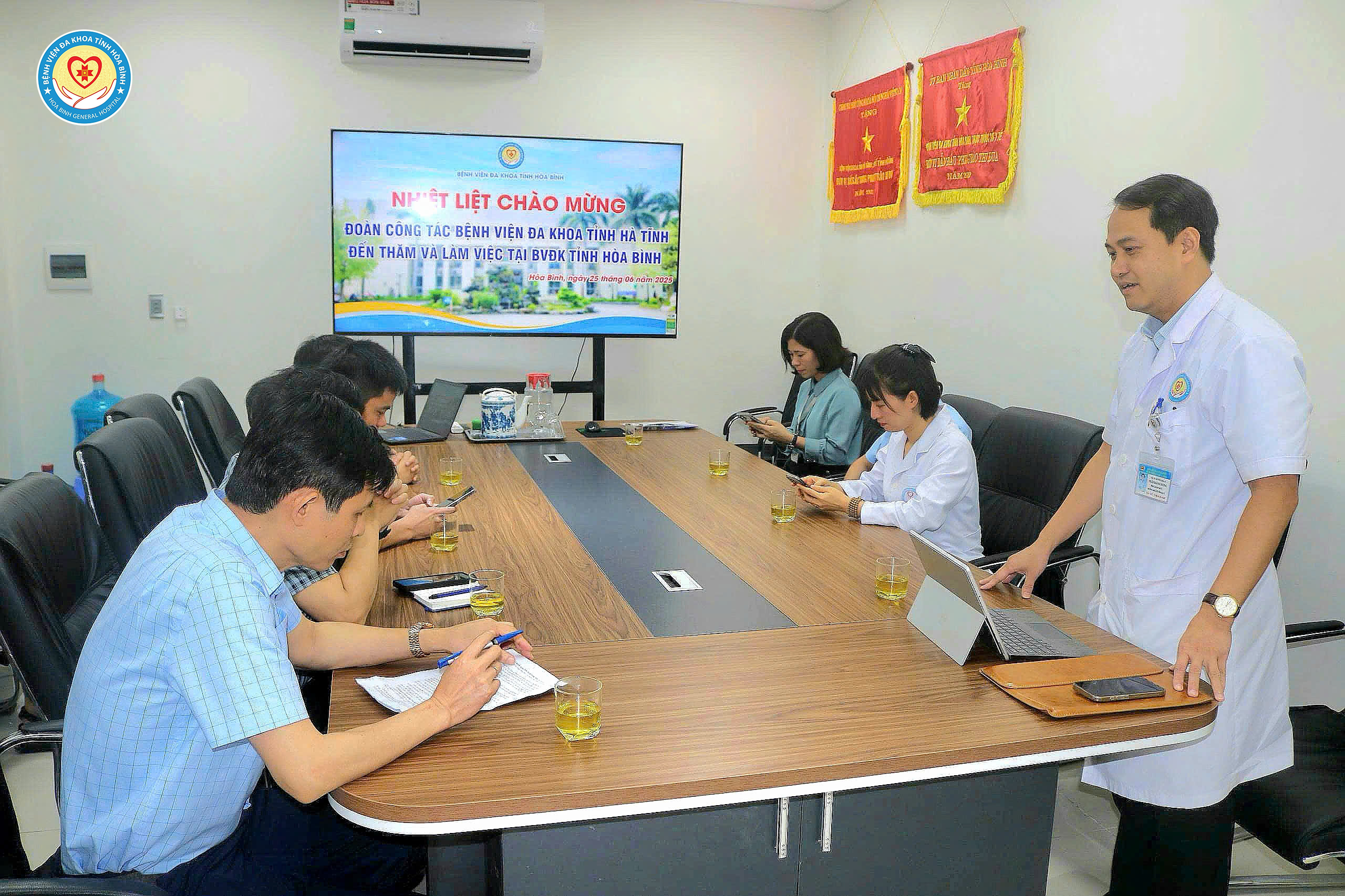 Trước đó, ngày 25/6, Bệnh viện Đa khoa tỉnh Hoà Bình cũng vinh dự được đón tiếp đoàn công tác đến từ Bệnh viện Đa khoa tỉnh Hà Tĩnh đến tham quan, trao đổi kinh nghiệm với cùng nội dung.