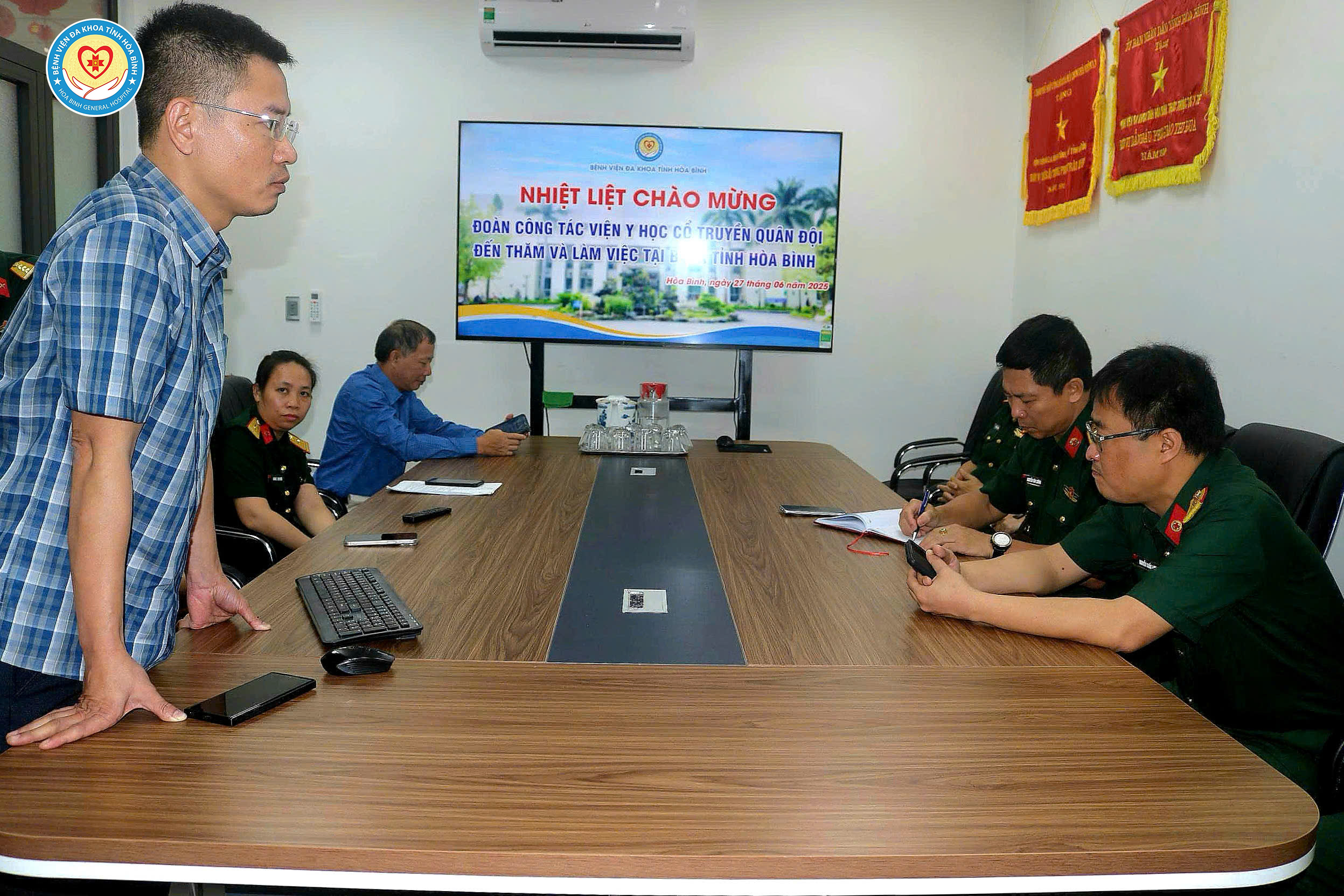 Ngày 27/6, Đoàn công tác Viện Y học cổ truyền (YHCT) Quân đội do Đại tá Lưu Trường Thanh Hưng, Phó Giám đốc Viện làm Trưởng đoàn đã có chuyến tham quan, trao đổi kinh nghiệm tại Bệnh viện Đa khoa tỉnh Hoà Bình về Hồ sơ Bệnh án điện tử.