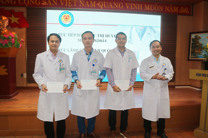 Cùng ngày, Hội đồng thi đua khen thưởng Bệnh viện cũng tổ chức khen thưởng đột xuất cho 3 khoa: Nội Tim mạch, Chấn thương – Chỉnh hình và Ung bướu vì những thành tích xuất sắc trong hoạt động chuyên môn và nhận được thư khen của người bệnh.