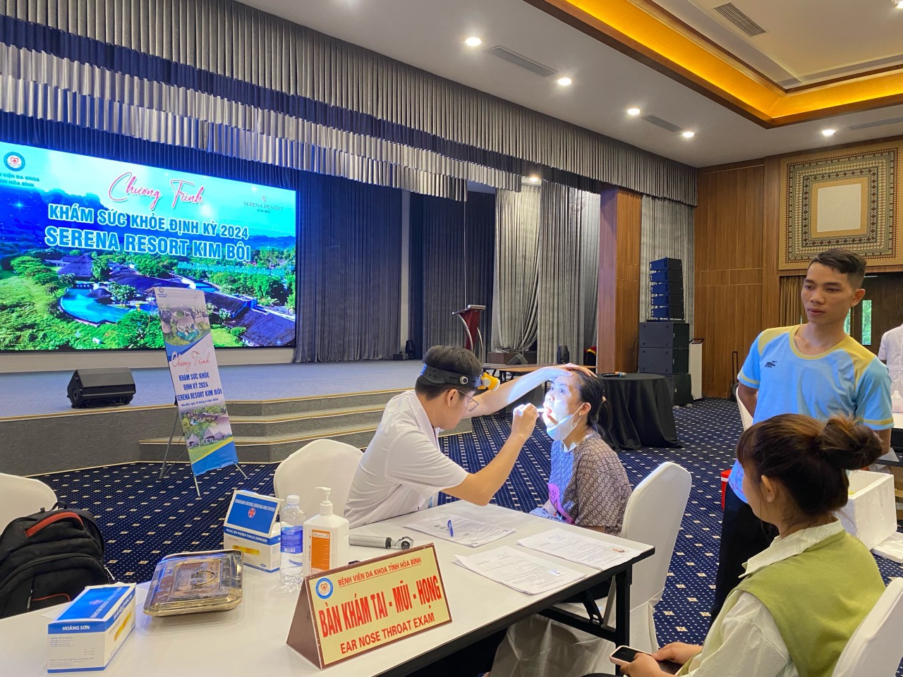 Ngày 15/6/2024, Bệnh viện Đa khoa tỉnh Hòa Bình đã khám sức khỏe định kỳ cho 158 cán bộ, công nhân viên của khu nghỉ dưỡng Serena Resort Kim Bôi, Hòa Bình