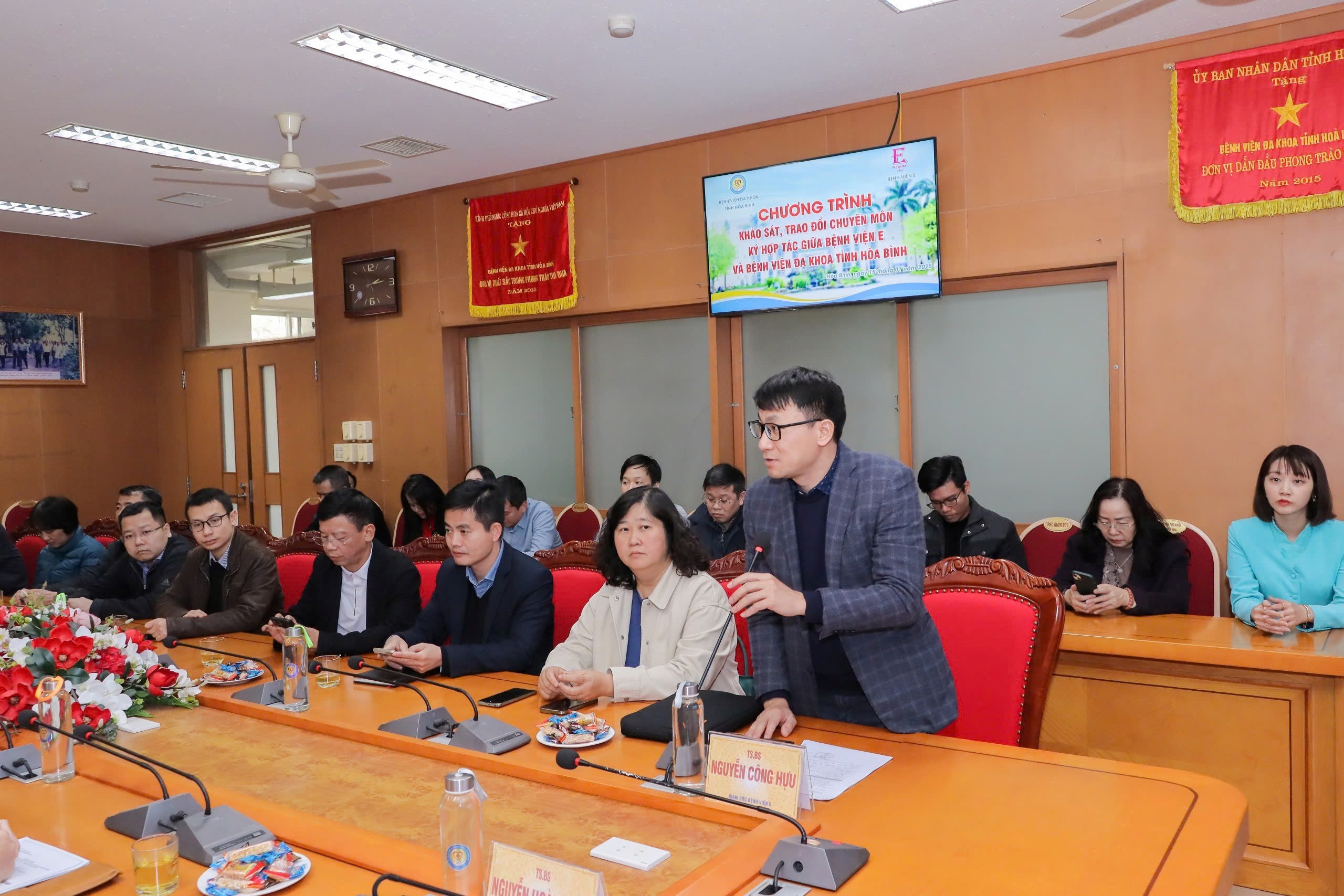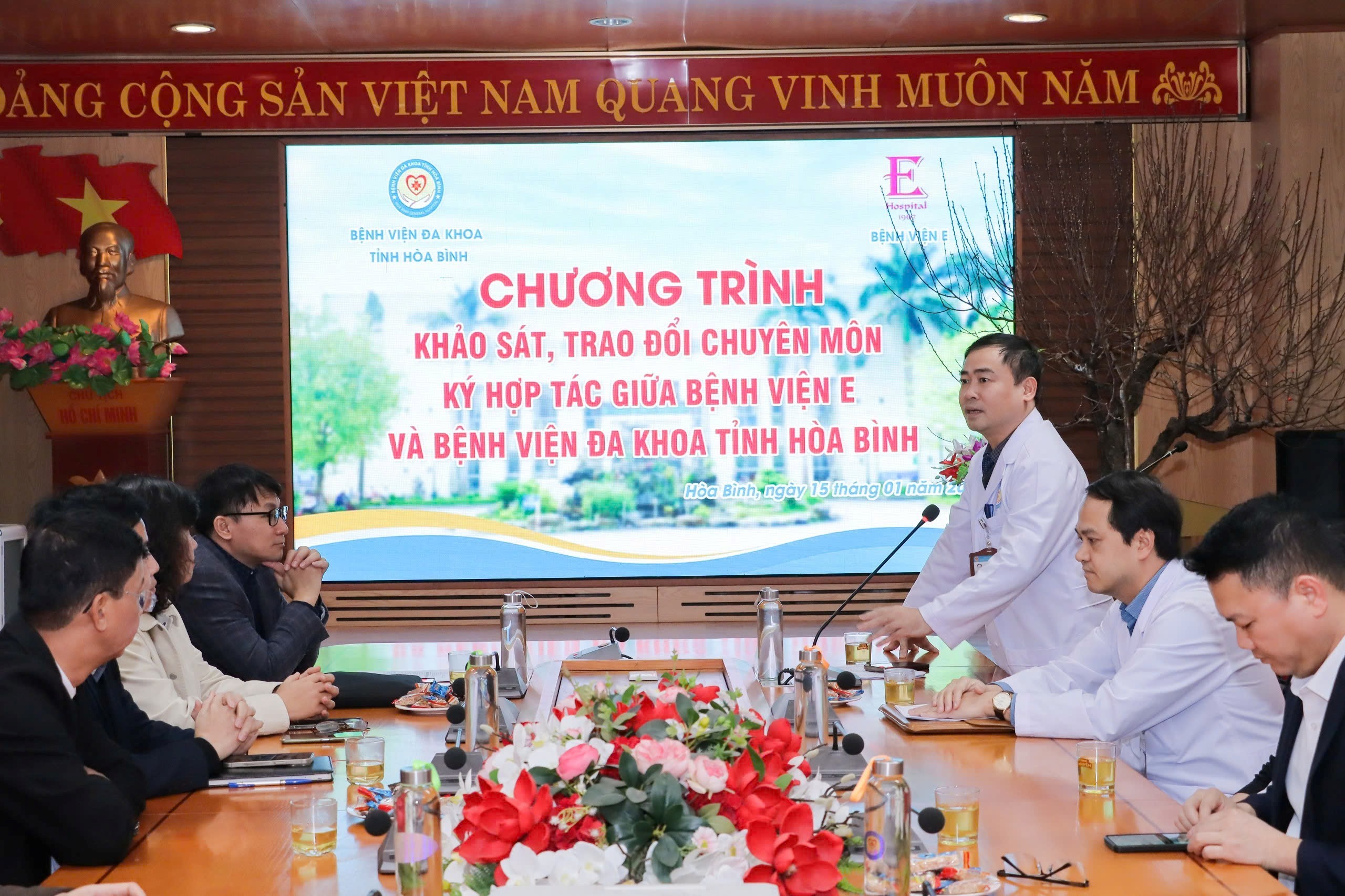 Bệnh viện E là bệnh viện hạng I trực thuộc Bộ Y tế. Đây là cơ sở khám chữa bệnh, nghiên cứu, đào tạo được trang bị hệ thống thiết bị y tế hiện đại cùng với đội ngũ cán bộ y tế đầu ngành nhiệt huyết, năng động, có trình độ chuyên môn cao. Bệnh viện luôn được đánh giá cao về chất lượng dịch vụ y tế, và luôn nỗ lực trong việc xây dựng, phát triển các hoạt động chuyên môn, quản trị, cải tiến chất lượng, nghiên cứu khoa học đặc biệt là tính hiệu quả và tính đổi mới trong quá trình quản trị của mình. Việc Bệnh viện Đa khoa tỉnh Hòa Bình ký kết hợp tác chuyên môn với Bệnh viện E không chỉ nhằm nâng cao chất lượng dịch vụ khám chữa bệnh, giúp người dân được khám và điều trị trong điều kiện tốt nhất, mục tiêu chung là giảm tải gánh nặng cho cộng đồng. Đồng thời, giúp đội ngũ y bác sĩ Bệnh viện Đa khoa tỉnh Hòa Bình dễ dàng tiếp cận với tiến bộ y học, khoa học - kỹ thuật tiên tiến từ việc chuyển giao kỹ thuật từ Bệnh viện E. Qua đó, hoàn thiện, nâng cao chuyên môn.
