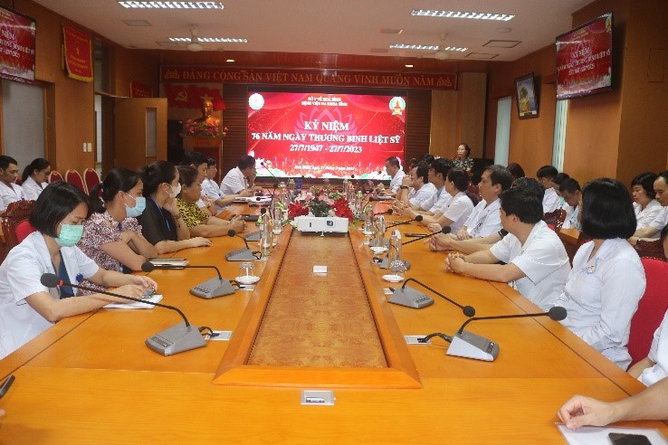 Hiện, Bệnh viện Đa khoa tỉnh Hoà Bình có 5 đồng chí là thân nhân gia đình liệt sĩ, thương, bệnh binh. Gồm các đồng chí: Đặng Trần Thanh Liêm, khoa Ngoại Tiết niệu – Nam học; Đinh Thị Chiên, khoa Phụ Sản; Nguyễn Văn Cường, phòng Hành chính – Quản trị; Nguyễn Thị Oanh, khoa Tâm – Thần kinh và Hà Huy Thảo khoa Chẩn đoán hình ảnh. Tại chương trình, các đại biểu đã cùng nhau ôn lại truyền thống lịch sử hào hùng, vẻ vang của dân tộc. Những cống hiến to lớn của các thế hệ cha anh đi trước để có được nền độc lập, tự do hôm nay. Đất nước hoà bình, kinh tế, văn hoá, xã hội phát triển là sự đánh đổi bằng tính mạng, xương máu của những anh hùng đã ngã xuống, của những thương, bệnh binh đã để lại một phần cơ thể trên chiến trường ác liệt. Mỗi người dân Việt Nam, trong đó có nhiều thế hệ cán bộ, viên chức, người lao động Bệnh viện Đa khoa tỉnh Hoà Bình luôn khắc ghi công ơn đó. Để từ đó, luôn cố gắng phấn đấu xây dựng Bệnh viện lớn mạnh, quan tâm chăm lo đến đời sống cán bộ viên chức nói chung và thân nhân gia đình liệt sỹ, thương, bệnh binh nói riêng.
