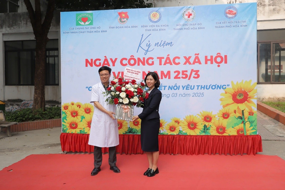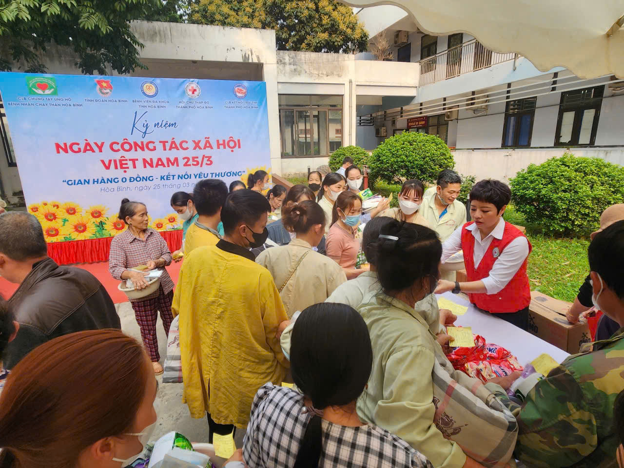 Chiều ngày 25/3, Bệnh viện Đa khoa (BVĐK) tỉnh Hòa Bình long trọng tổ chức kỷ niệm Ngày Công tác xã hội Việt Nam lần thứ 9 (25/3/2016 - 25/3/2025) và Chương trình “Gian hàng 0 đồng – Kết nối yêu thương”. Chương trình có sự tham gia của lãnh đạo Tỉnh Đoàn, lãnh đạo BVĐK tỉnh, đại diện Hội Chữ thập đỏ TP Hòa Bình, lãnh đạo và nhân viên Phòng Công tác xã hội (CTXH) BVĐK tỉnh, các đơn vị từ thiện cùng đông đảo bệnh nhân và người nhà có hoàn cảnh khó khăn đang điều trị tại bệnh viện.