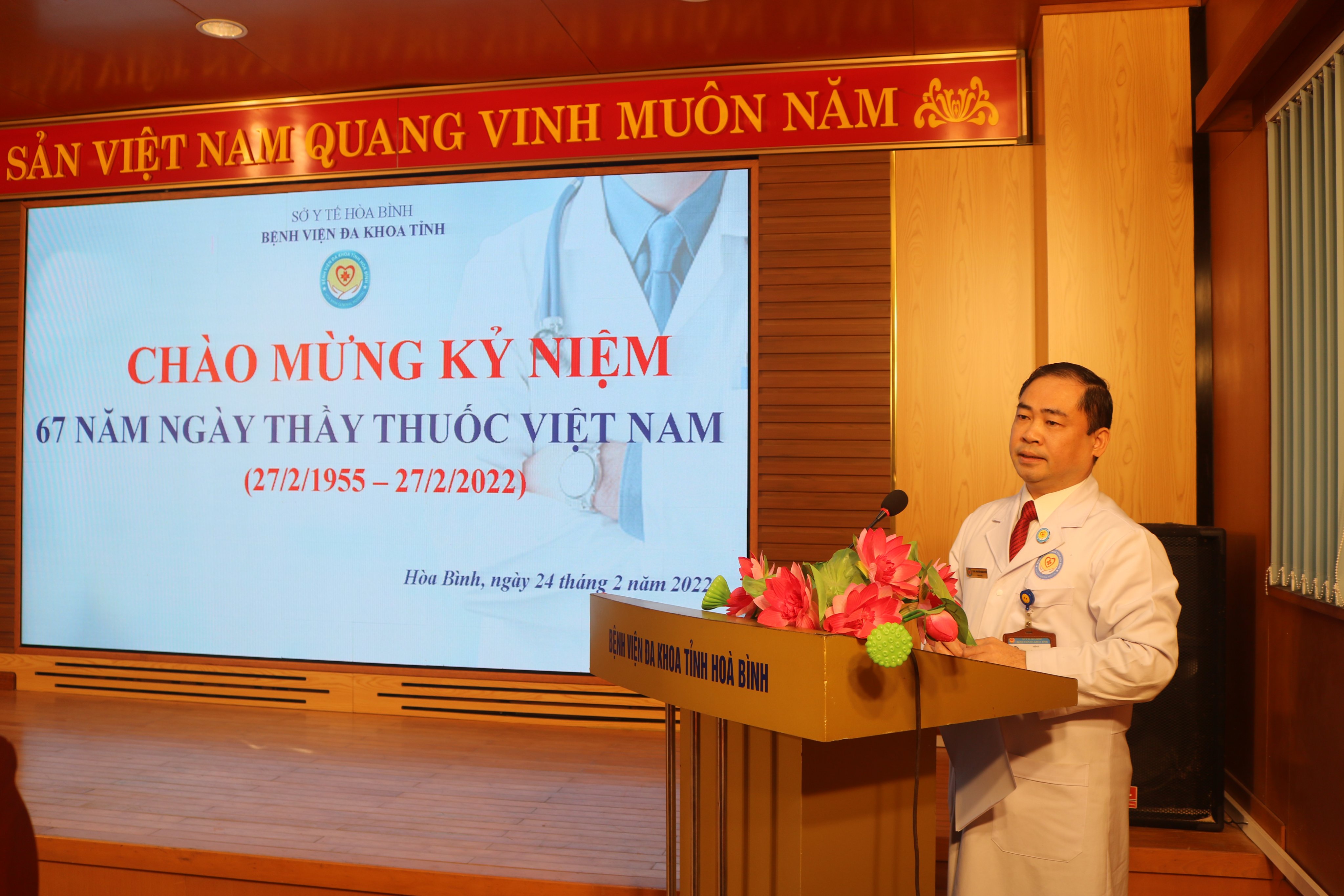 Sáng 24/2, Bệnh viện Đa khoa tỉnh Hoà Bình tổ chức Lễ kỷ niệm ôn lại truyền thống Ngày Thầy thuốc Việt Nam 27/2. TS.BS Nguyễn Hoàng Diệu, Bí thư Đảng ủy, Giám đốc Bệnh viện dự và động viên chương trình.
