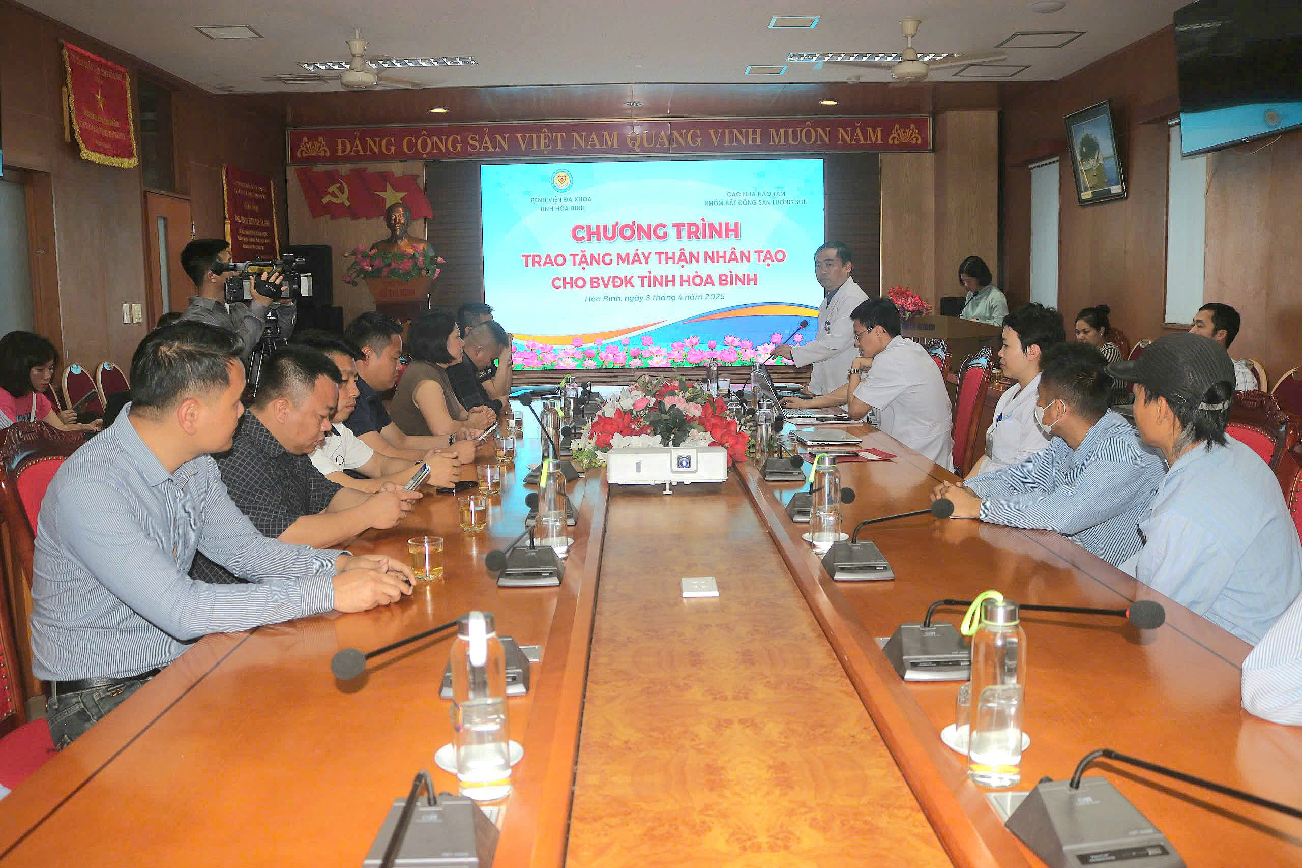 Chiều ngày 8/4, tại Bệnh viện Đa khoa tỉnh Hòa Bình đã diễn ra buổi lễ trang trọng tiếp nhận máy chạy thận nhân tạo do Nhóm Bất động sản Lương Sơn trao tặng. Tham dự buổi lễ có ông Phạm Văn Hưng – đại diện Nhóm Bất động sản Lương Sơn, TS.BS Nguyễn Hoàng Diệu – Giám đốc Bệnh viện Đa khoa tỉnh Hòa Bình, cùng lãnh đạo các khoa, phòng và đông đảo bệnh nhân đang điều trị chạy thận nhân tạo tại bệnh viện.