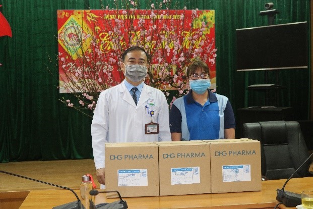 Cùng ngày, BVĐK tỉnh cũng vui mừng đón tiếp đại diện Công ty CP dược phẩm hậu Giang đến thăm, tặng quà phòng chống dịch cho BVĐK tỉnh.