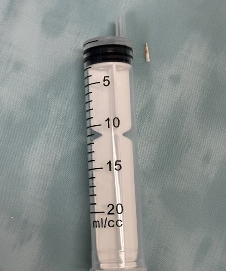 Đoạn xương cá sắc nhọn dài 1cm sau khi được gắp ra khỏi cơ thể bệnh nhân