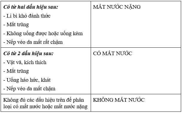 Đánh giá mức độ mất nước trong tiêu chảy?