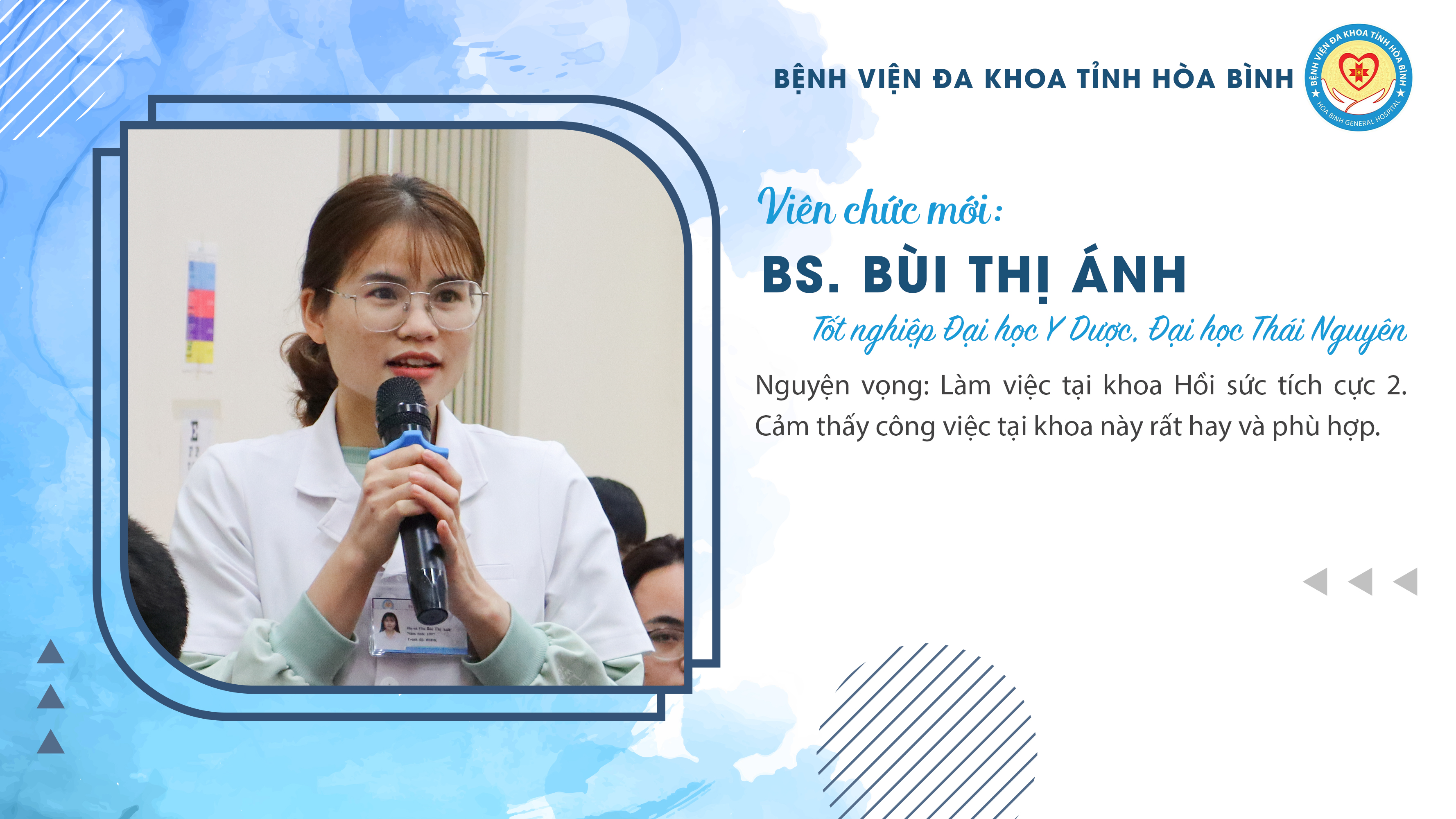 Tại chương trình, các đồng chí trong Ban Giám đốc, Công đoàn cơ sở Bệnh viện, lãnh đạo các khoa phòng cũng chia sẻ một số thông tin, quy định chung của từng lĩnh vực hoạt động do mình phụ trách. Định hướng để các viên chức có cái nhìn tổng quan về Bệnh viện, hiểu rõ hơn về Ban lãnh đạo và môi trường làm việc mới. Đồng thời, lần lượt các viên chức mới giới thiệu về bản thân, bày tỏ nguyện vọng, sở trường cũng như thế mạnh cá nhân để các đồng chí lãnh đạo Bệnh viện, lãnh đạo các Ban đoàn thể và các khoa, phòng hiểu và sắp xếp công việc cũng như bố trí việc làm phù hợp.