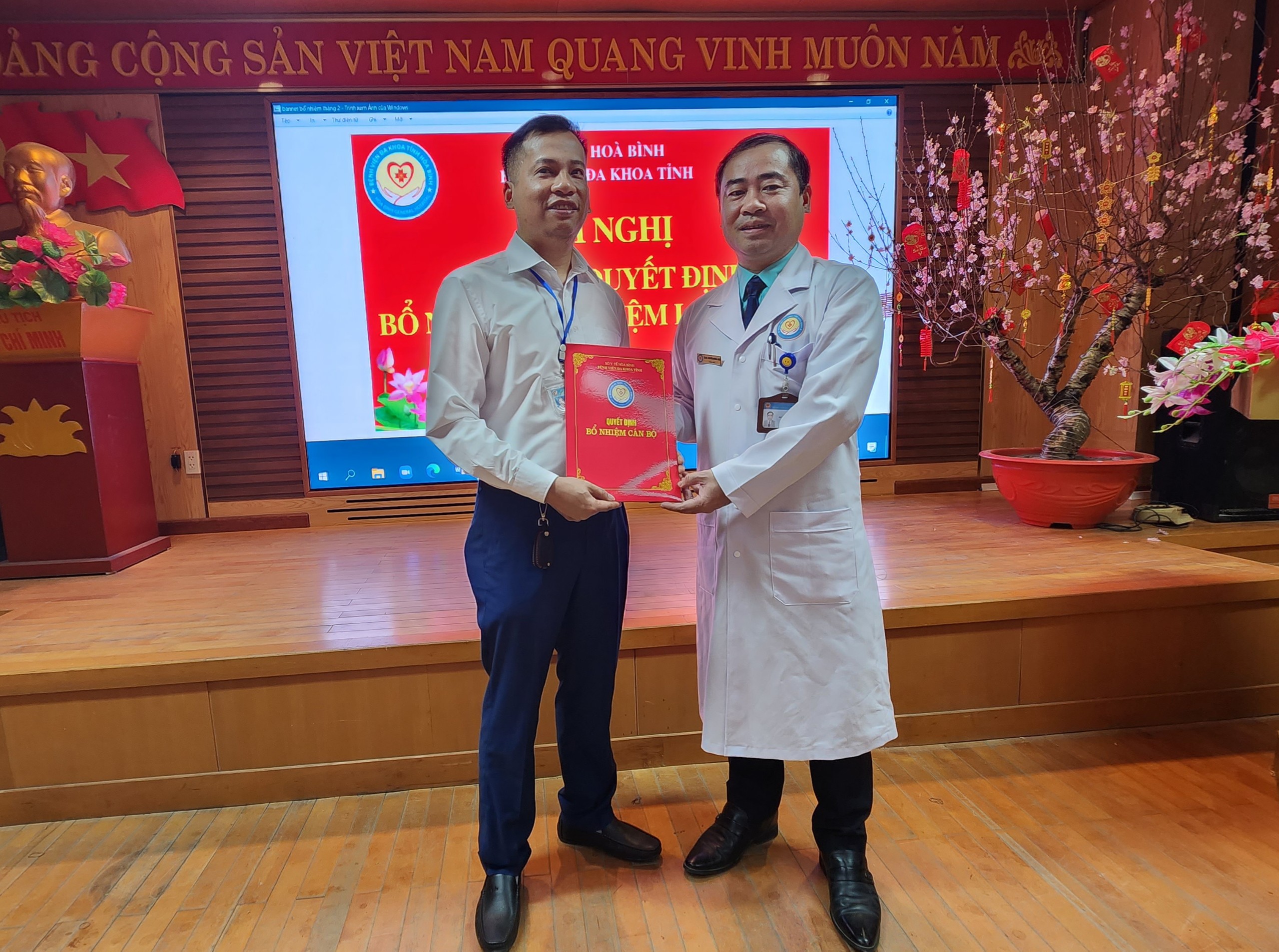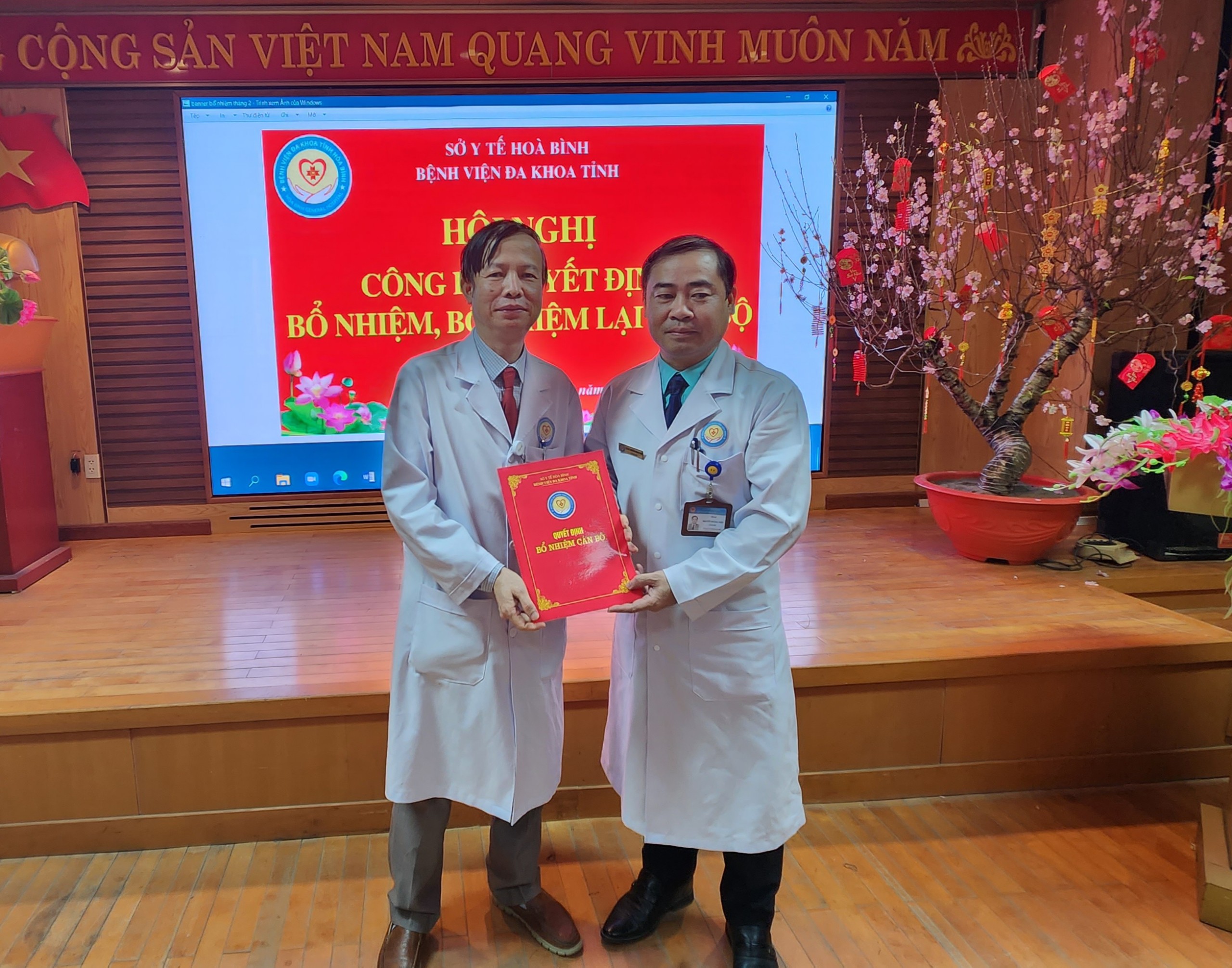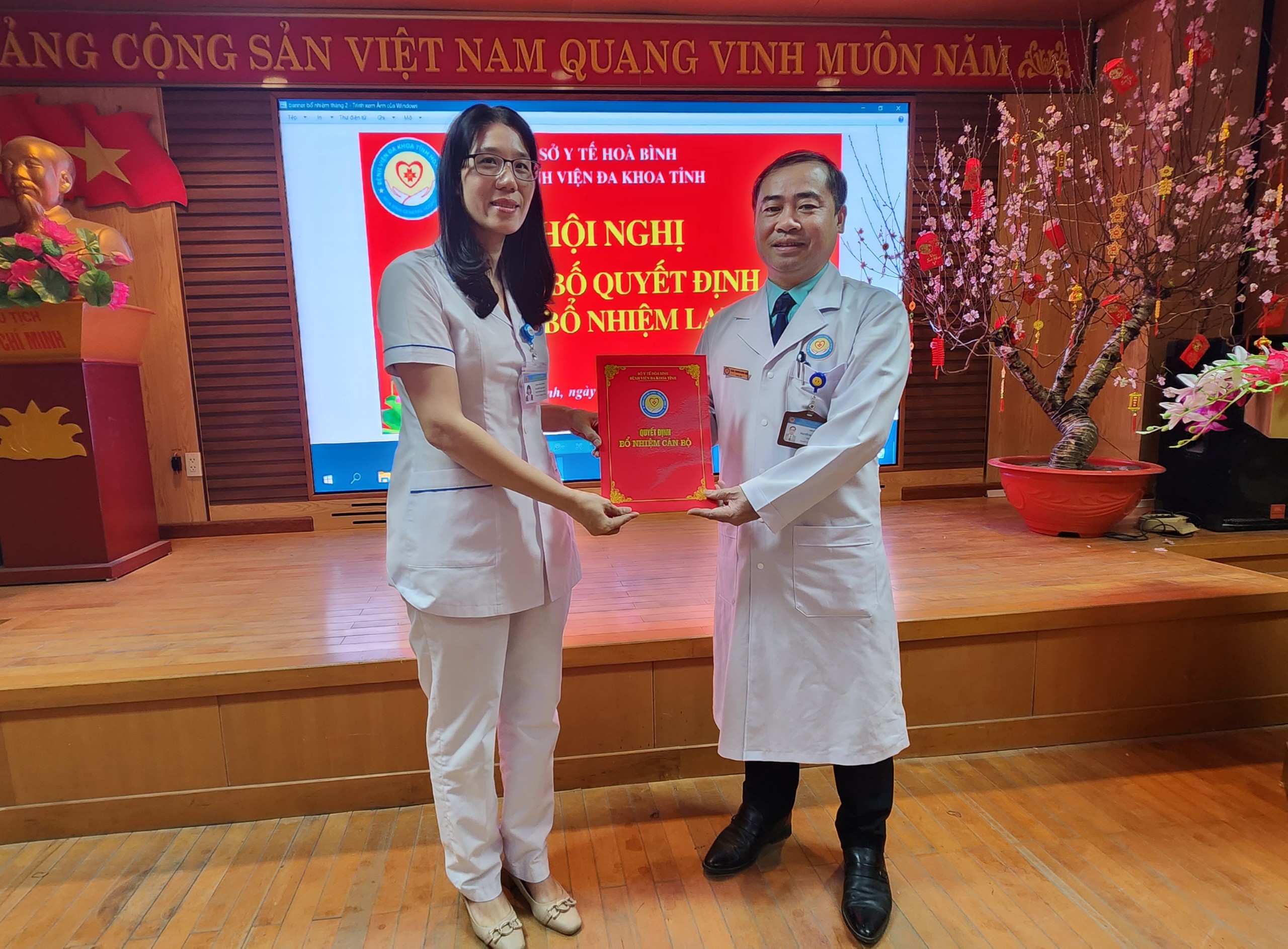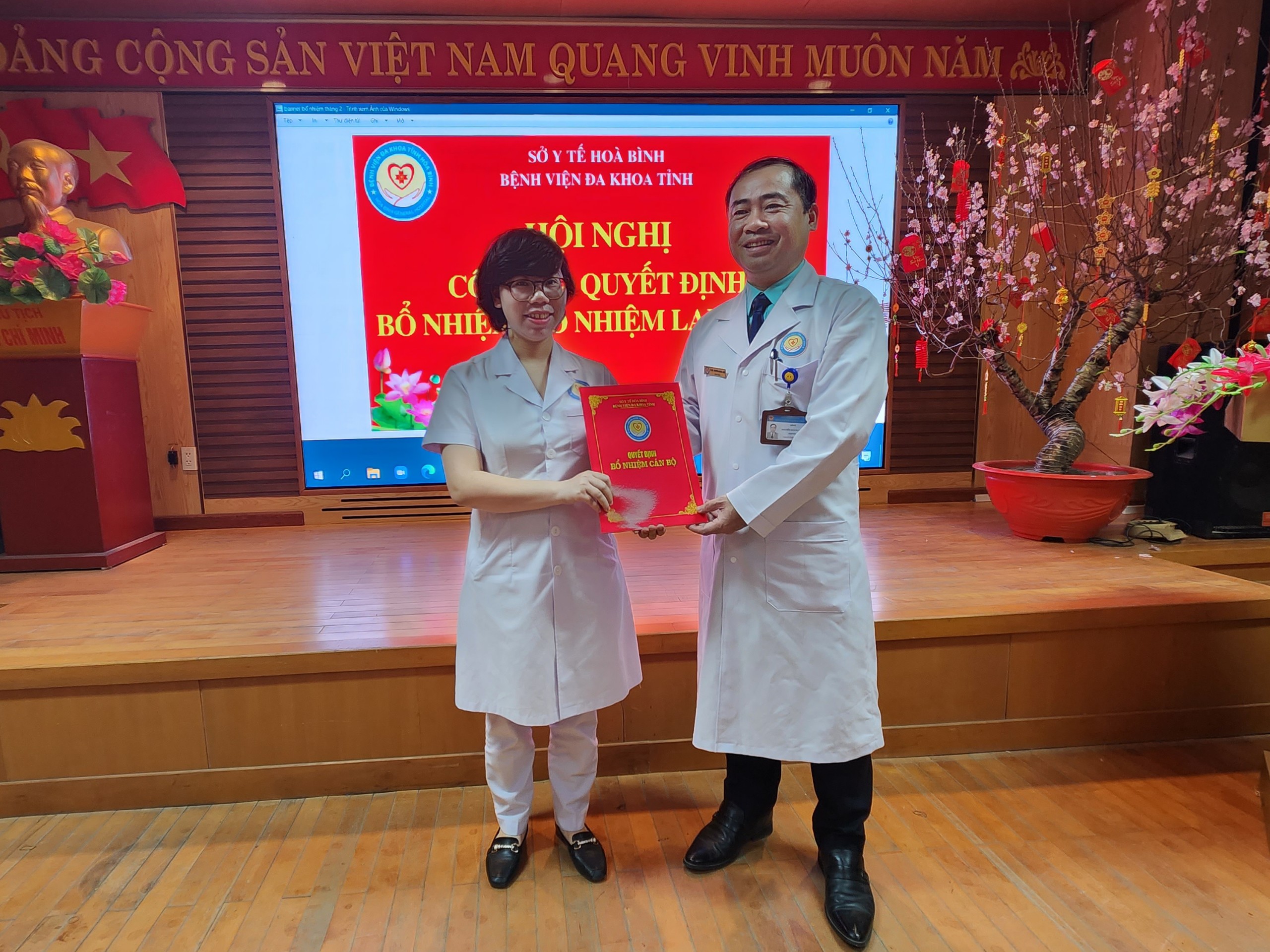 Ngày 7/2, Bệnh viện Đa khoa tỉnh Hoà Bình long trọng tổ chức Hội nghị Công bố các Quyết định bổ nhiệm và bổ nhiệm lại đối với chức danh Trưởng, Phó khoa, phòng của 8 khoa, phòng. Thầy thuốc ưu tú, TS.BS Nguyễn Hoàng Diệu, Bí thư Đảng uỷ, Giám đốc Bệnh viện dự và chủ trì Hội nghị.