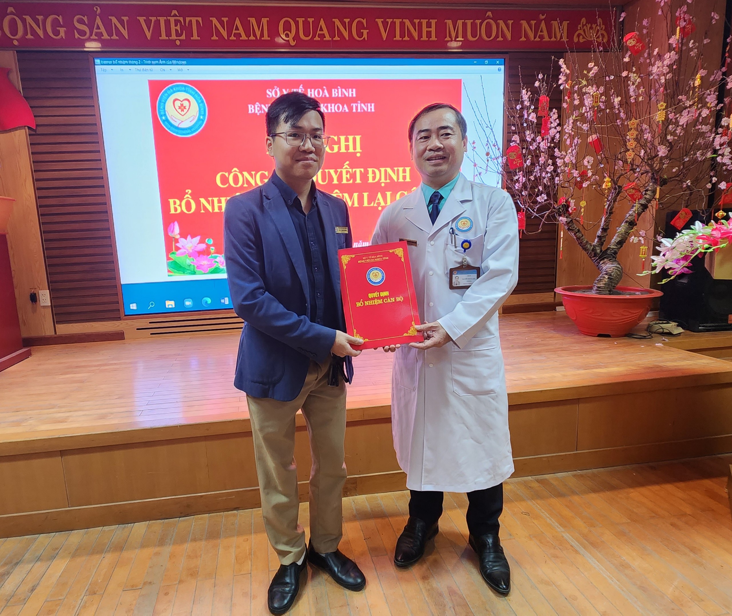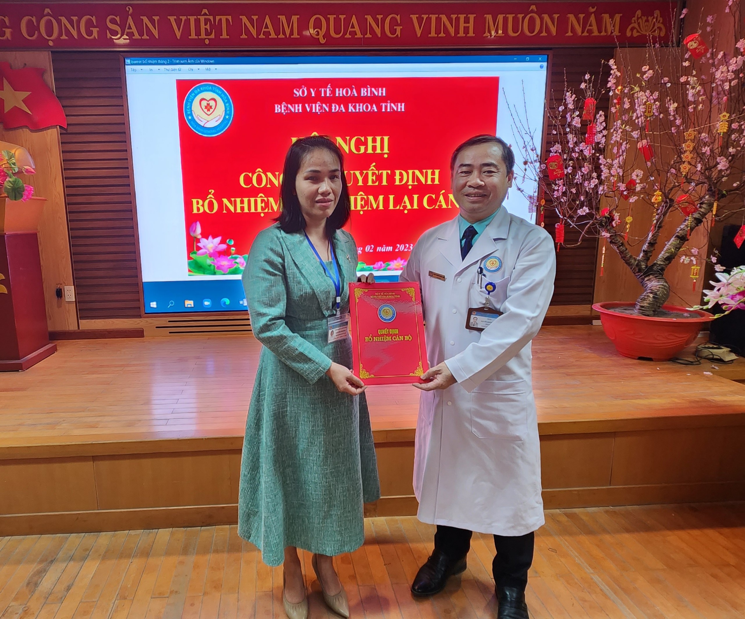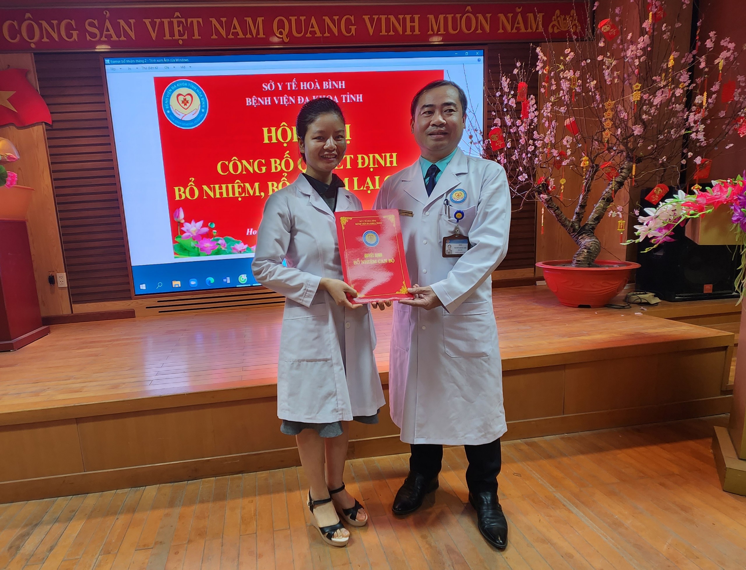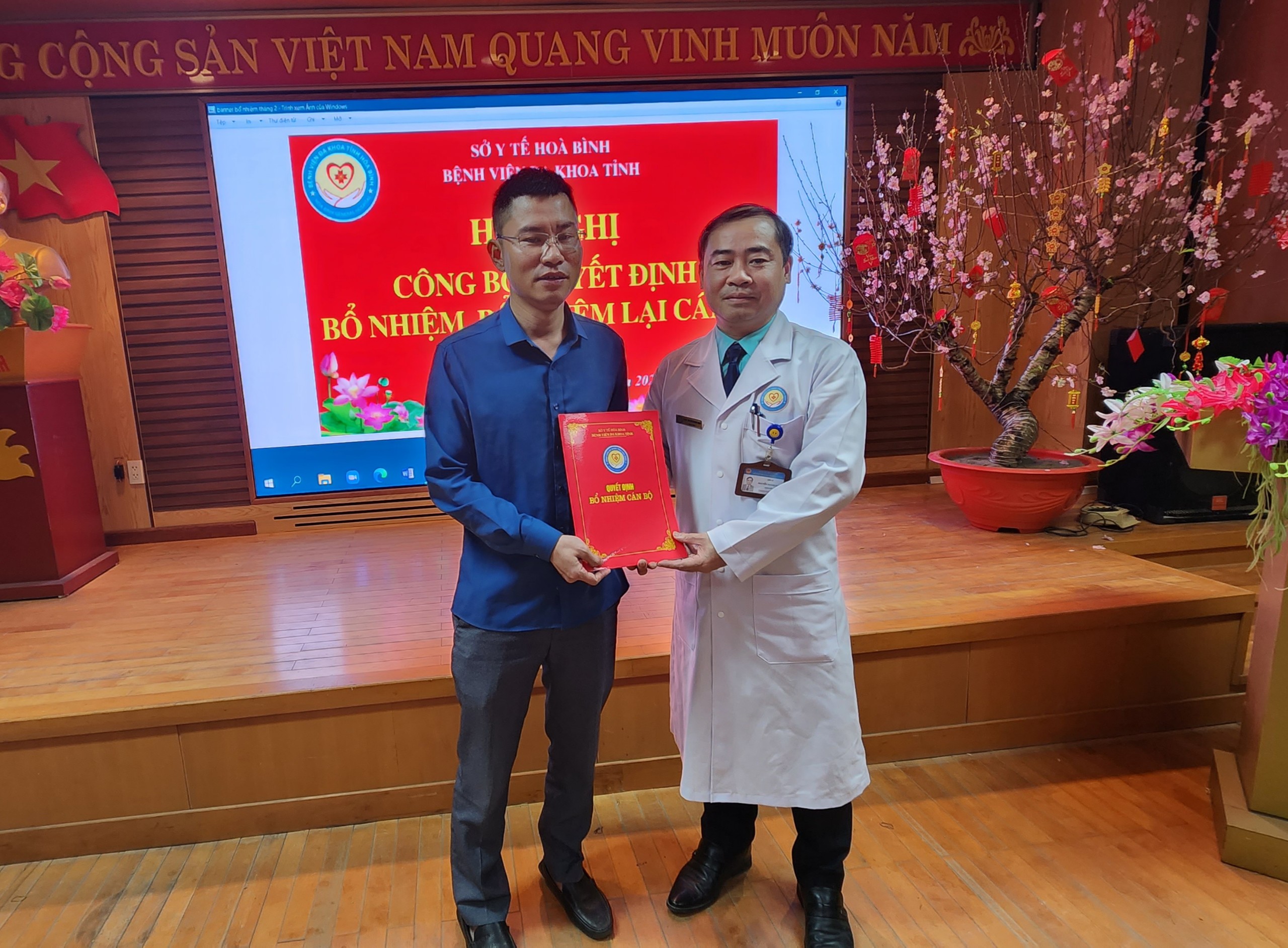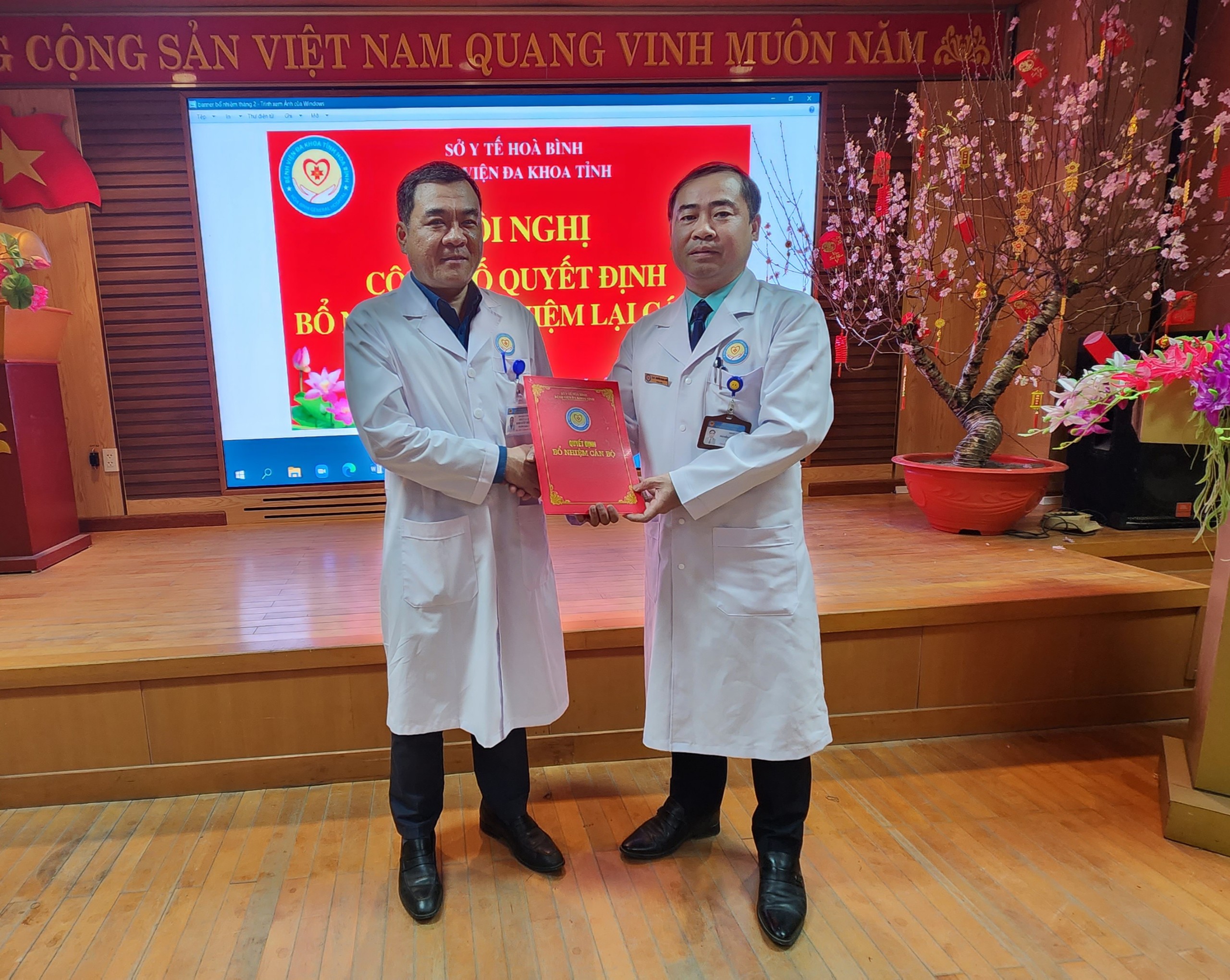 Ngày 7/2, Bệnh viện Đa khoa tỉnh Hoà Bình long trọng tổ chức Hội nghị Công bố các Quyết định bổ nhiệm và bổ nhiệm lại đối với chức danh Trưởng, Phó khoa, phòng của 8 khoa, phòng. Thầy thuốc ưu tú, TS.BS Nguyễn Hoàng Diệu, Bí thư Đảng uỷ, Giám đốc Bệnh viện dự và chủ trì Hội nghị.