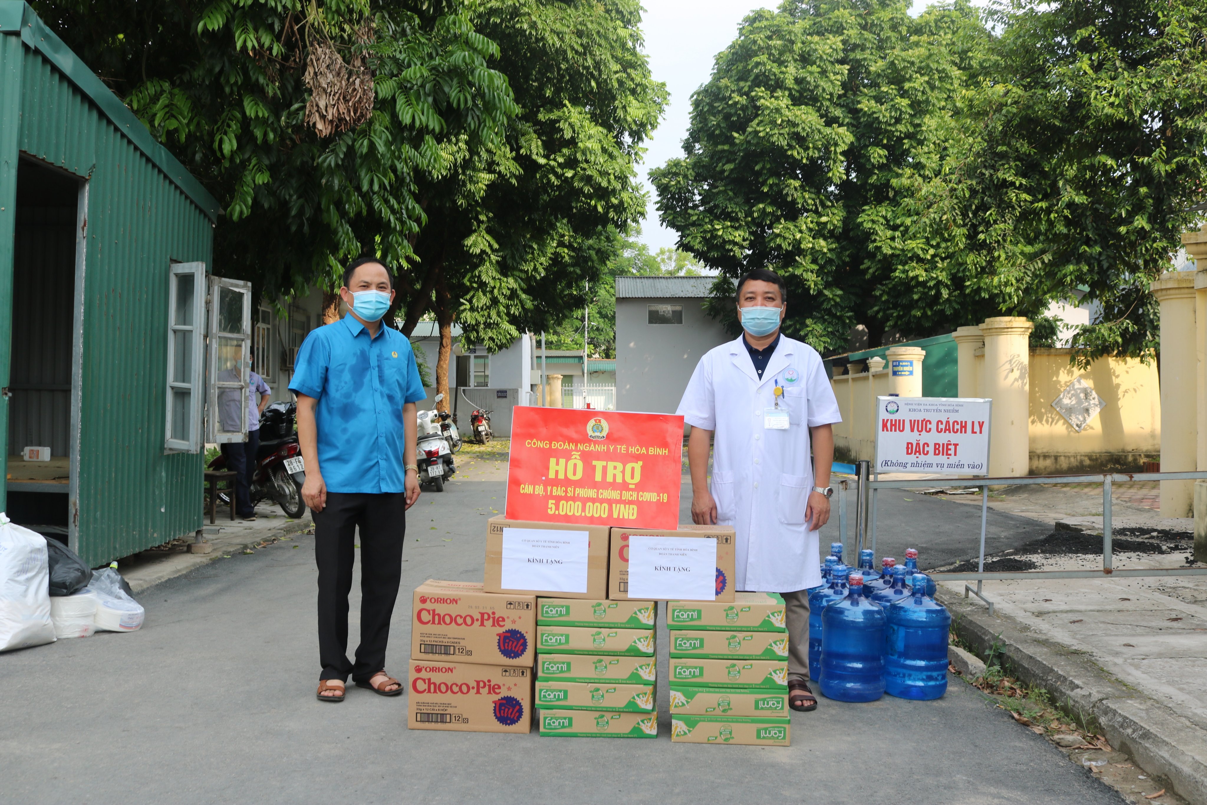 Tiếp nhận quà, thay mặt BVĐK tỉnh, BS.CKII Nguyễn Quốc Phương, Chủ tịch Công đoàn cơ sở - Phó Giám đốc BVĐK tỉnh gửi lời cảm ơn sâu sắc nhất tới các đồng chí lãnh đạo Công đoàn ngành cũng như tấm lòng của các công đoàn viên ngành Y tế và Đoàn Thanh niên Sở Y tế. Cán bộ, y bác sĩ BVĐK tỉnh cảm thấy rất hạnh phúc, và thêm động lực phấn đấu vì trong suốt quá trình hoạt động của mình cũng như từ khi cùng nhân dân cả nước tham gia chống dịch, BVĐK tỉnh luôn nhận được rất nhiều sự quan tâm ủng hộ của các cấp ngành, đặc biệt là của Công đoàn ngành. Số quà và tiền mặt sẽ được chuyển trực tiếp đến tay các cán bộ, nhân viên y tế đang làm việc tại khu cách ly. Đồng chí Phó Giám đốc BVĐK tỉnh cũng mong rằng, với sự cố gắng nỗ lực của cả nhân viên y tế, bệnh nhân cũng như người dân cả nước, đợt bùng phát dịch lần thứ 4 này sẽ sớm kết thúc tại Hoà Bình nói riêng và cả nước nói chung.