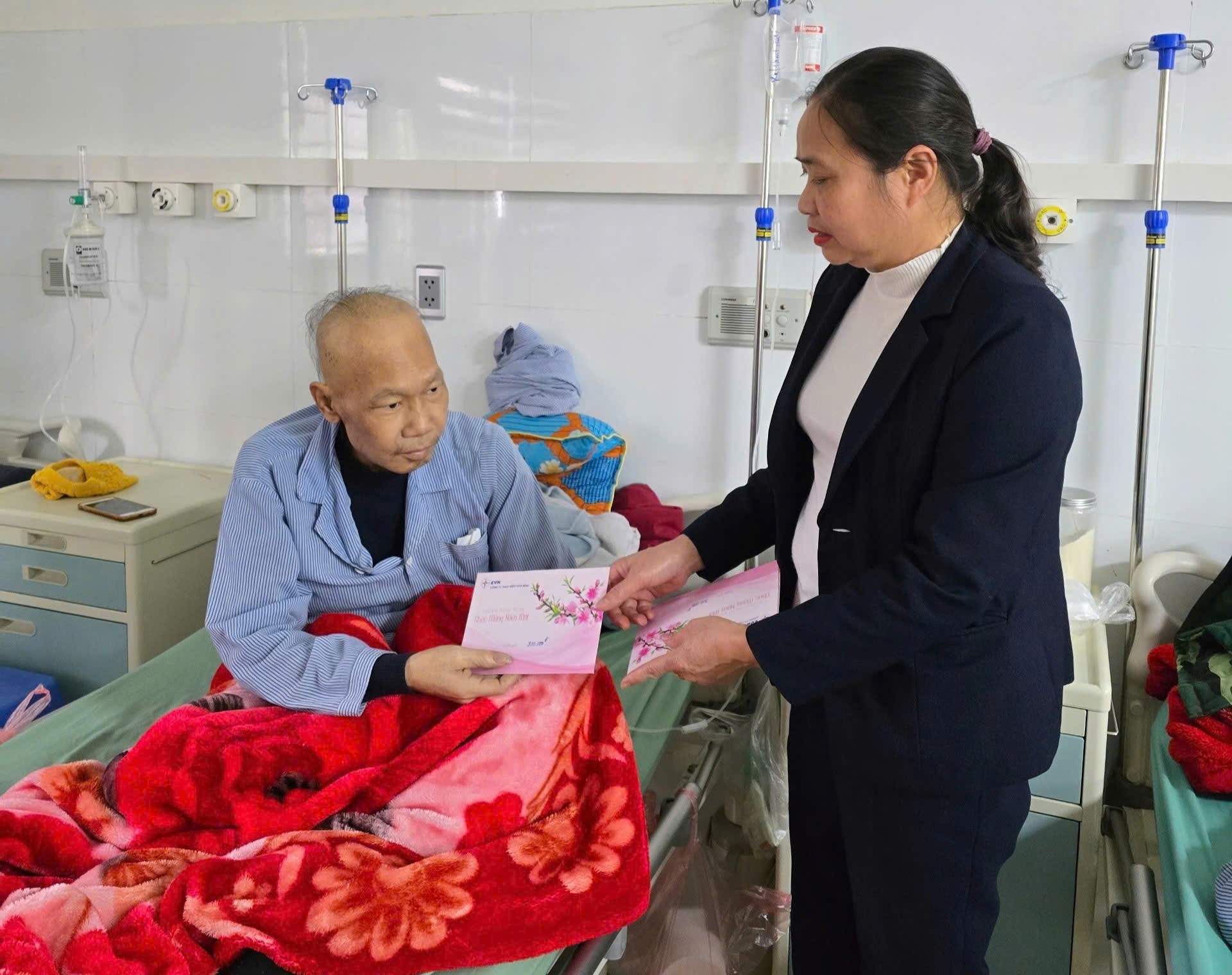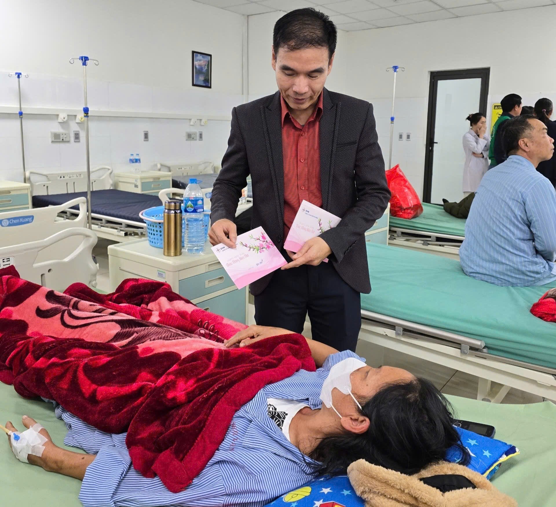 Thay mặt Bệnh viện và các bệnh nhân, BS.CKII Nguyễn Quốc Phương, Phó Giám đốc Bệnh viện gửi lời cảm ơn sâu sắc và trân trọng nhất tới hai đơn vị. Sự quan tâm, tình cảm của các đơn vị dành cho bệnh nhân không chỉ kịp thời chia sẻ, làm vơi bớt những khó khăn với bệnh nhân và người nhà. Mà đây còn là nguồn động viên lớn với cán bộ, viên chức, người lao động bệnh viện, để người cán bộ y tế cảm thấy họ không đơn độc trong công cuộc chăm sóc sức khỏe nhân dân. Nhân dịp Tết Nguyên đán Xuân Ất Tỵ, đồng chí Phó Giám đốc Bệnh viện tỉnh gửi lời chúc sức khỏe, may mắn và bình an tới thành viên hai đơn vị. Đồng chí mong rằng, thời gian tới, Bệnh viện Đa khoa tỉnh tiếp tục nhận được sự quan tâm, ủng hộ và đồng hành của các đơn vị trong công tác thiện nguyện.
