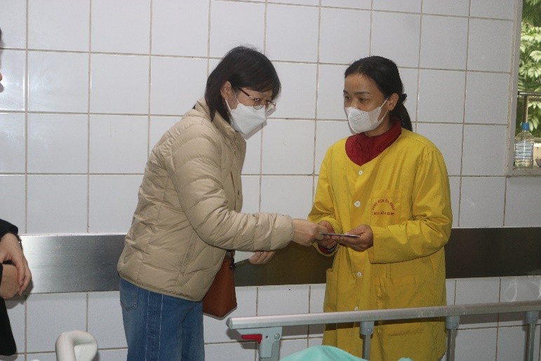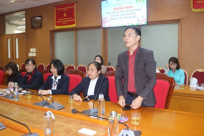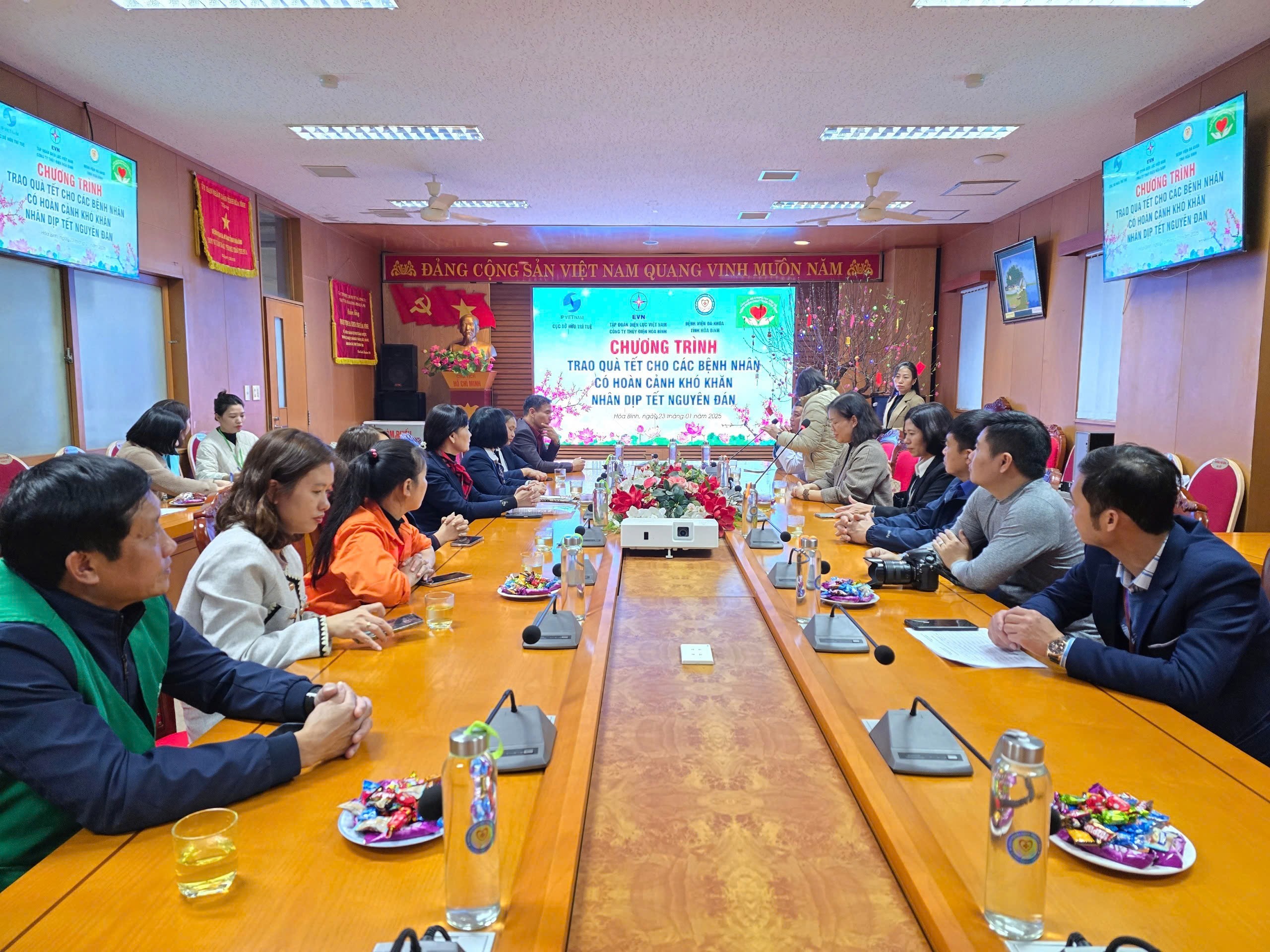 Chiều 23/01 (tức 24 tháng Chạp), đoàn các đơn vị gồm Cục Sở hữu trí tuệ Việt Nam do bà Vũ Thị Kim Phụng, Phó Chủ tịch Cục làm Trưởng đoàn và Công ty Thủy điện Hòa Bình do ông Trần Văn Hòa, Phó Giám đốc Công ty làm Trưởng đoàn đến thăm, chúc tết cán bộ, viên chức, người lao động Bệnh viện và tặng quà cho bệnh nhân có hoàn cảnh khó khăn điều trị đang điều trị nội trú. Tiếp đoàn có BS.CKII Nguyễn Quốc Phương, Phó Giám đốc Bệnh viện cùng lãnh đạo một số khoa, phòng.