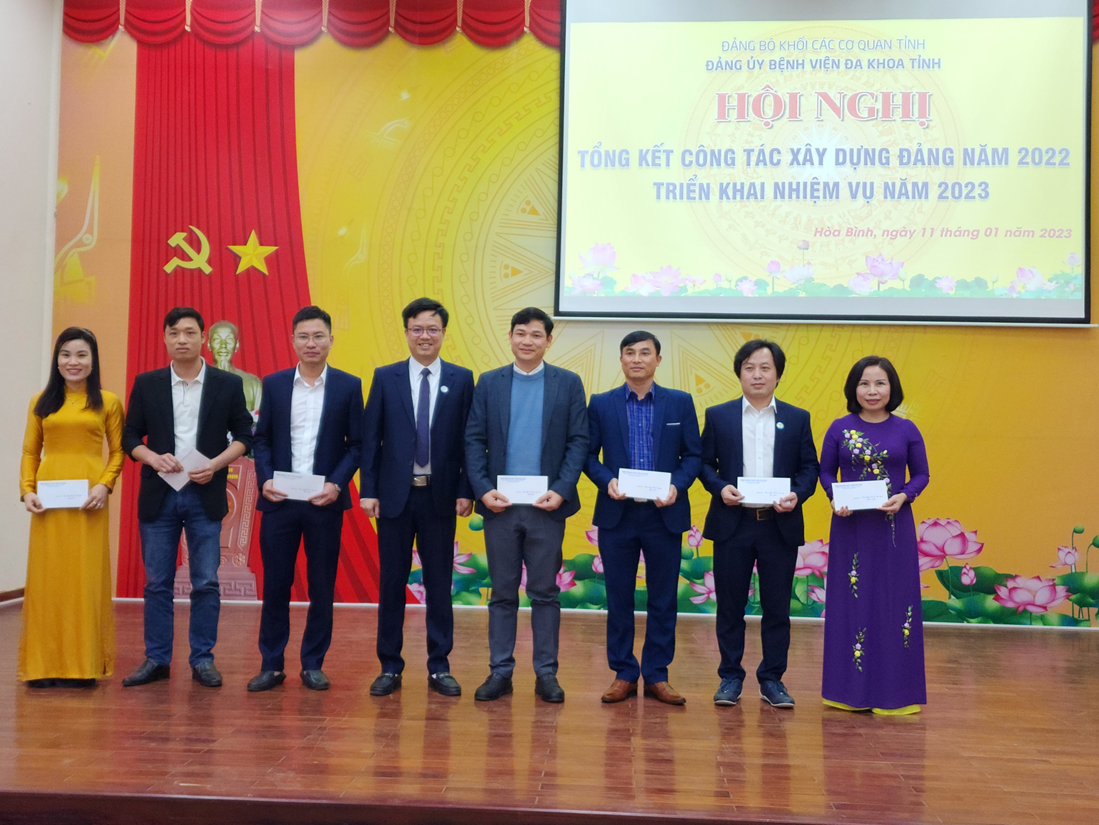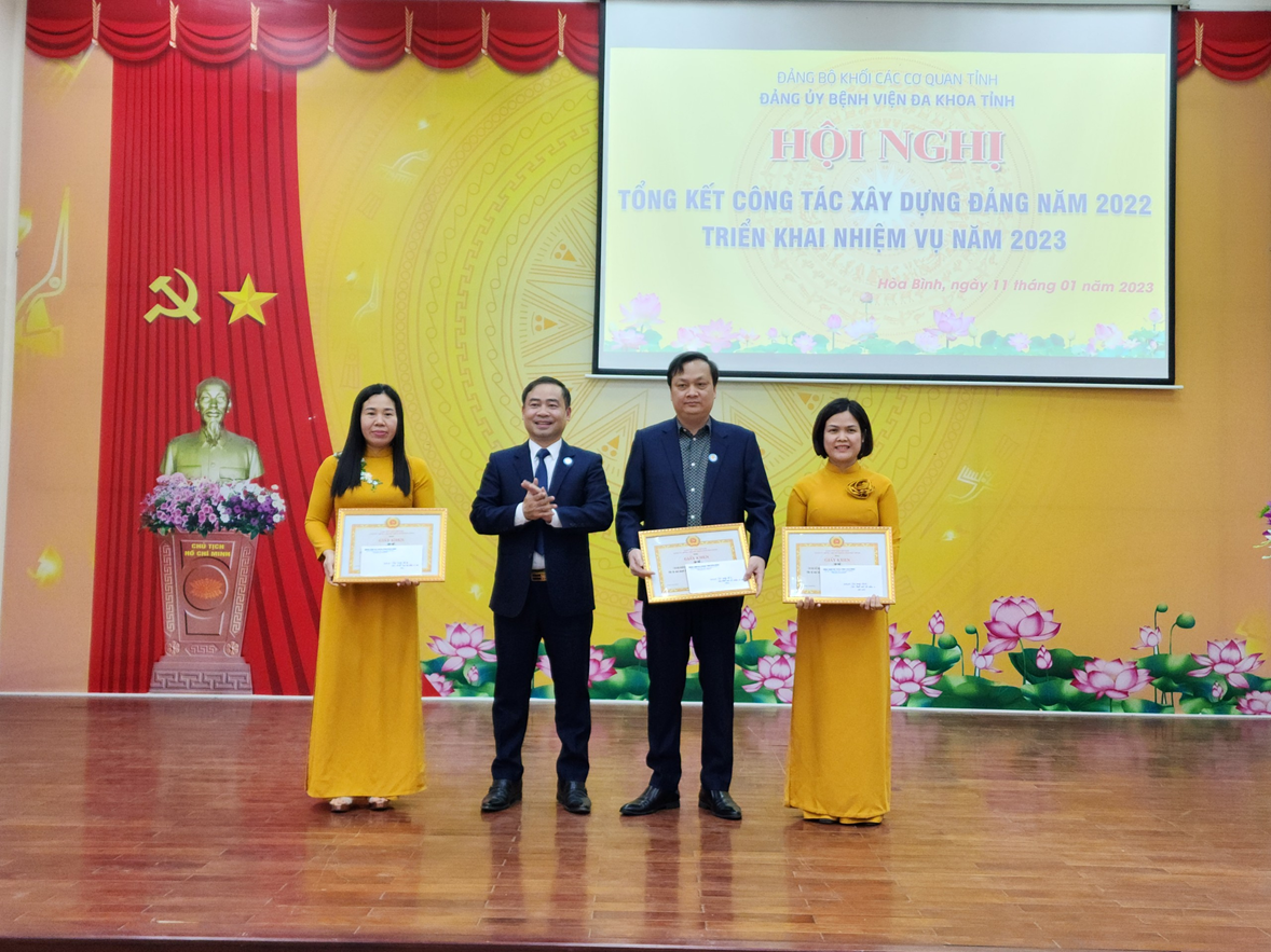 Nhân dịp này, đồng chí Bí thư Đảng bộ Bệnh viện đã khen thưởng 3 chi bộ hoàn thành xuất sắc nhiệm vụ, 8 chi bộ tiêu biểu năm 2022 và 42 Đảng viên hoàn thành xuất sắc nhiệm vụ.