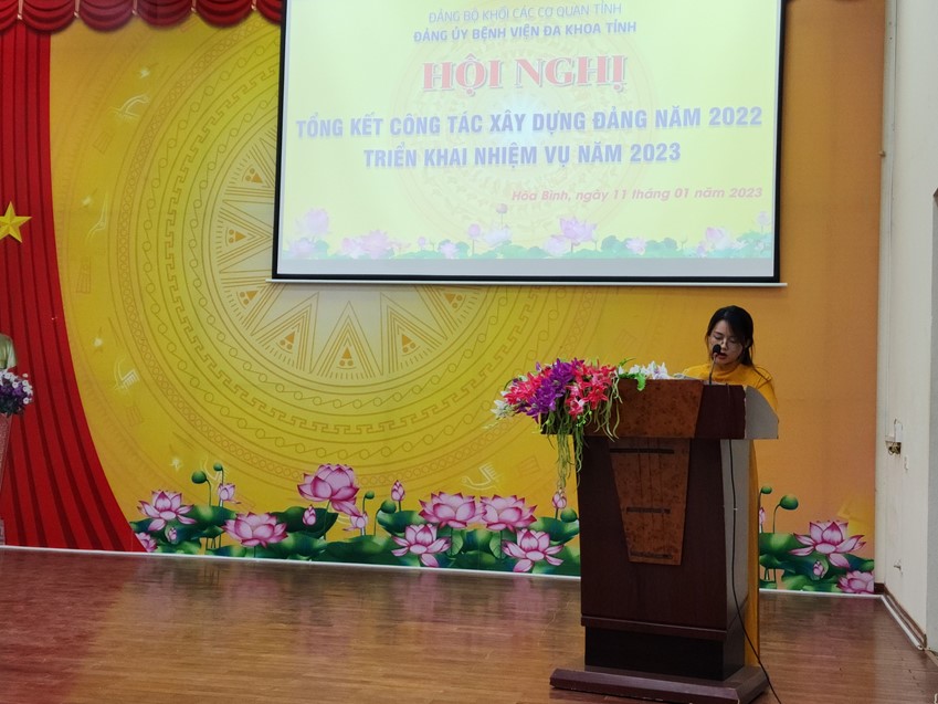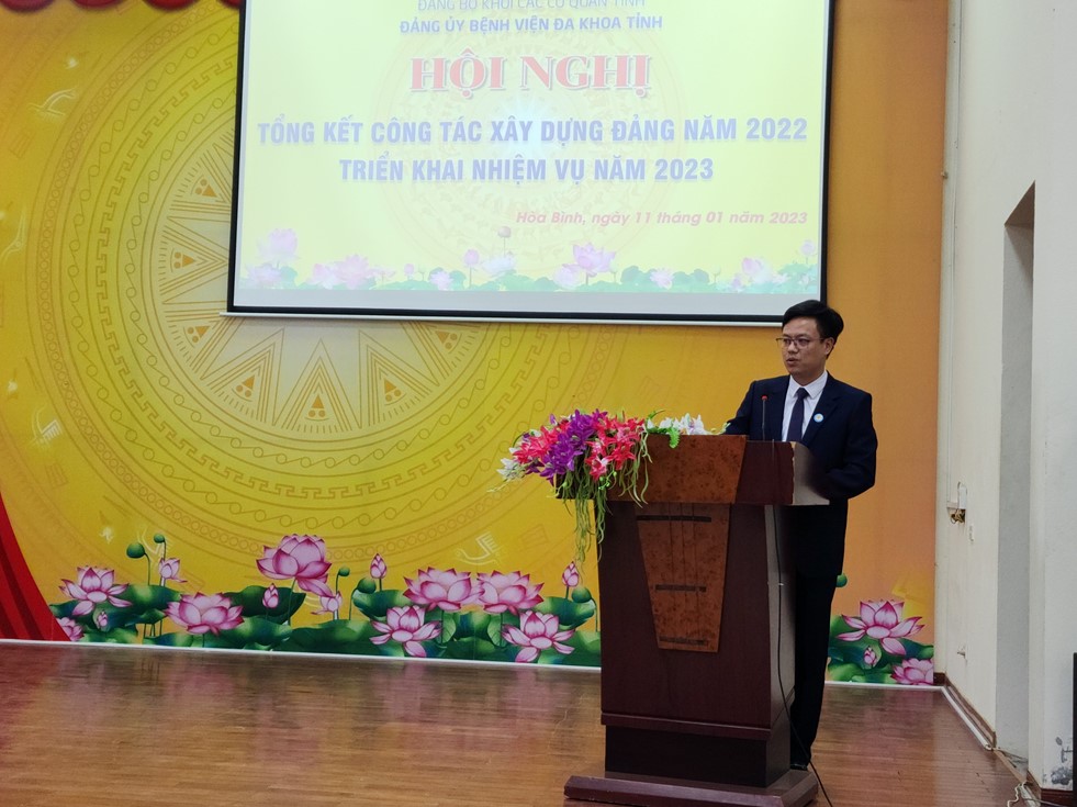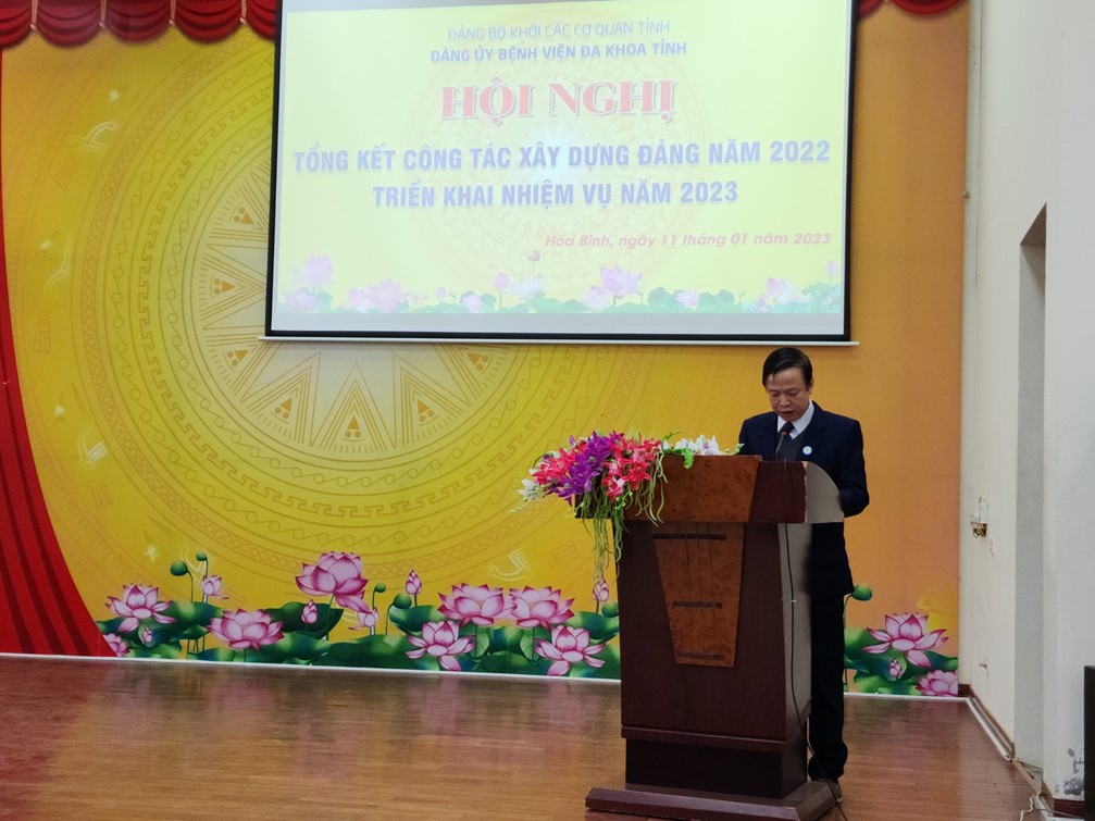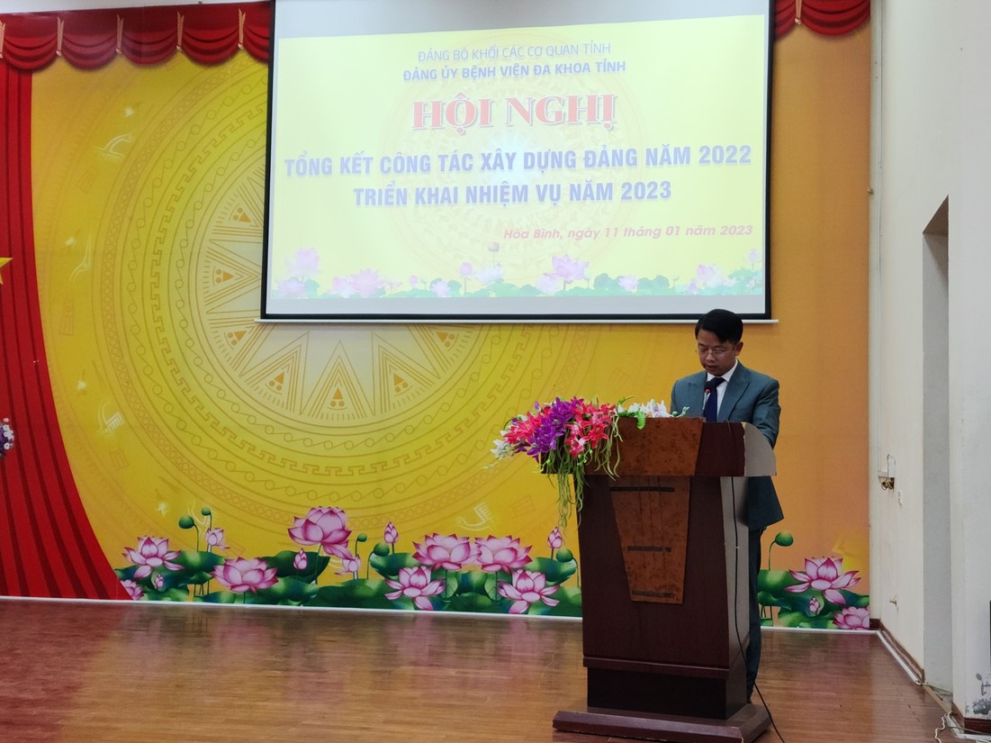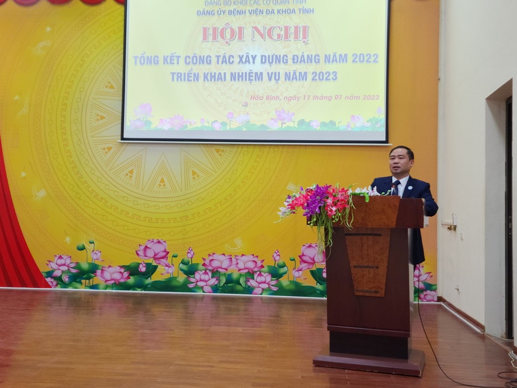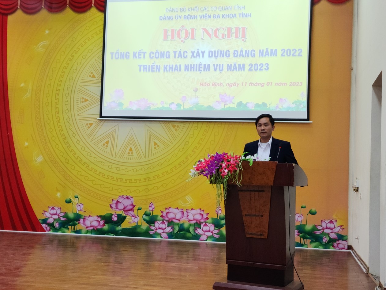 Ngày 11/01/2023, Đảng bộ Bệnh viện Đa khoa tỉnh Hòa Bình tổ chức Hội nghị Tổng kết công tác xây dựng Đảng năm 2022 và triển khai nhiệm vụ năm 2023. Đồng chí Nguyễn Hùng Cường, Phó Bí Thư Đảng ủy khối các cơ quan tỉnh dự và chỉ đạo Hội nghị.