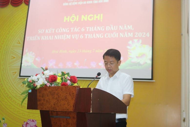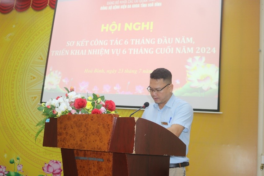Ngày 23/7, Ban chấp hành Đảng uỷ Bệnh viện Đa khoa tỉnh Hoà Bình long trọng tổ chức Hội nghị sơ kết 6 tháng đầu năm và triển khai nhiệm vụ 6 tháng cuối năm 2024. Dự chỉ đạo Hội nghị có đồng chí Nguyễn Quốc Hùng, Uỷ viên BTV, Chủ nhiệm UB kiểm tra Đảng uỷ khối các cơ quan tỉnh. TS.BS Nguyễn Hoàng Diệu, Uỷ viên BCH Đảng bộ khối CCQ tỉnh, Bí thư Đảng uỷ, Giám đốc Bệnh viện chủ trì Hội nghị.