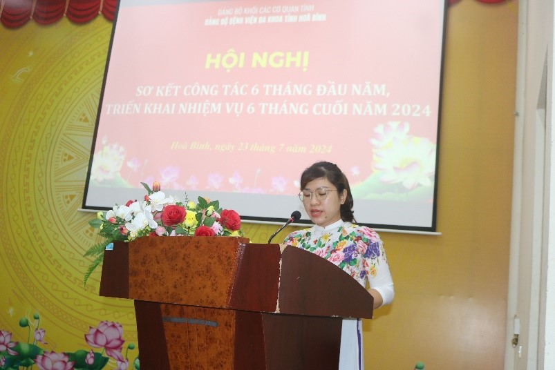 Tại Hội nghị, các đại biểu đã được nghe trình bày tóm tắt Báo cáo đánh giá công tác 6 tháng đầu năm và triển khai nhiệm vụ 6 tháng cuối năm 2024. Báo cáo đã nêu rõ những kết quả đạt được trong lãnh đạo, chỉ đạo của Đảng bộ Bệnh viện về các mặt hoạt động trong công tác chuyên môn, công tác đào tạo, thông tin tuyên truyền, công tác cán bộ, hành chính, công tác tài chính... Bên cạnh đó, báo cáo cũng chỉ rõ những hạn chế, tồn tại trong thực hiện nhiệm vụ 6 tháng đầu năm, đồng thời đề ra một số nhiệm vụ trọng tâm 6 tháng cuối năm 2024.