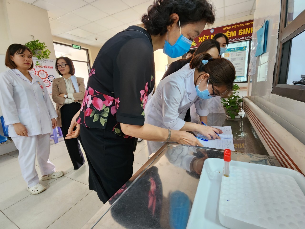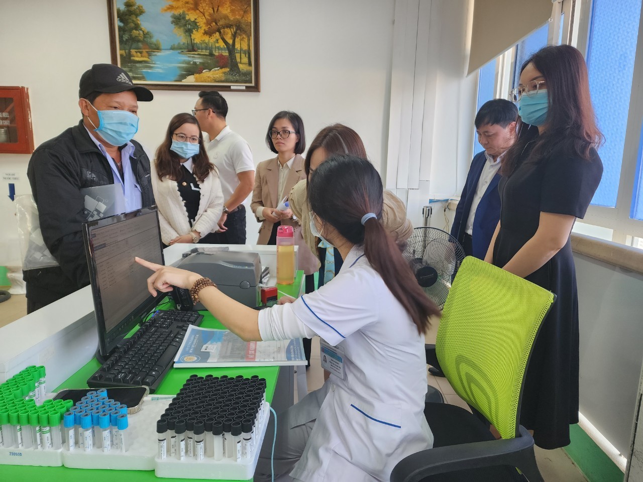 Đoàn đánh giá khảo sát tại khu vực lấy máu xét nghiệm