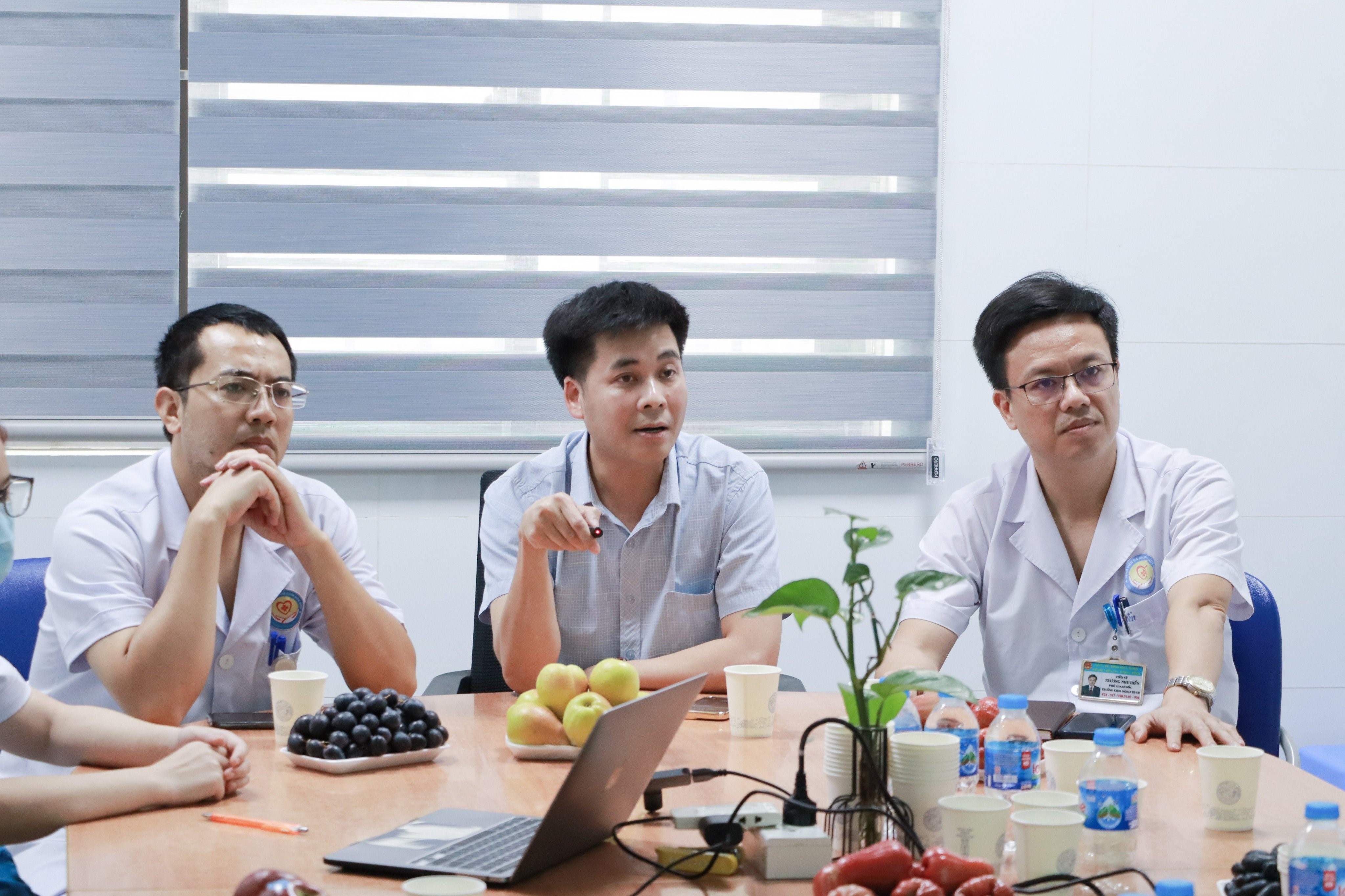 Từ phải sang: TS. BS Trương Như Hiển, Phó Giám đốc Bệnh viện, TS. BS Nguyễn Quang Hùng, Phó Giám đốc Trung tâm ung bướu Bạch Mai, giảng viên tại chương trình, BS.CKII Nguyễn Thanh Tuấn, Phó Trưởng khoa, phụ trách khoa Ung bướu BVĐK tỉnh
