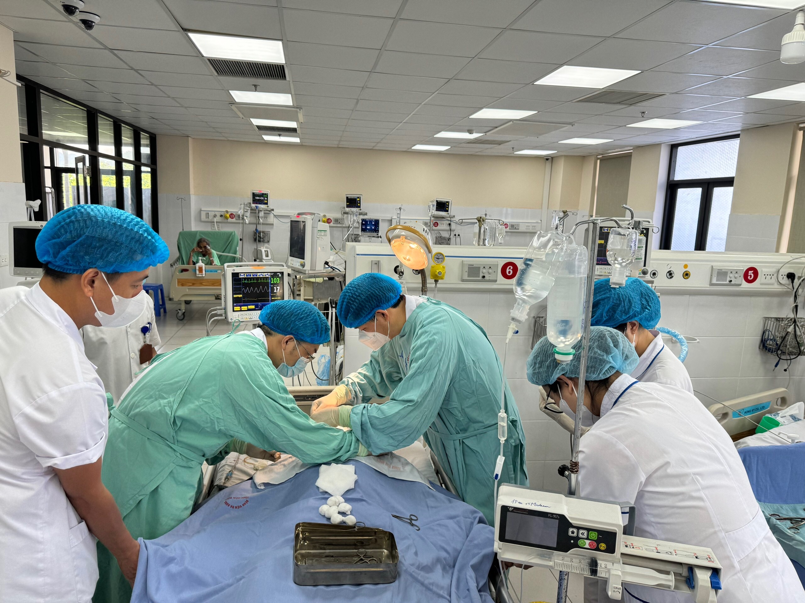 Bệnh nhân Bùi Văn Ch, 57 tuổi (Cao Phòng-Hòa Bình), nhập viện trong tình trạng toàn thân gồng cứng, cứng hàm không há được miệng. Sau đó bệnh nhân nhanh chóng rơi vào tình trạng co giật toàn thân, 2 hàm răng cắn chặt nên không thể đặt ống nội khí quản, cơ thể cứng như khúc gỗ, có những cơn ngừng thở ngắn, phổi và khoang miệng có nhiều đờm ứ đọng không thể ho khạc được. Các thầy thuốc đã nhanh chóng mở khí quản tối khẩn cấp (thực hiện trong 5 phút) để khai thông đường thở cho bệnh nhân, hỗ trợ thở máy, dùng thuốc kháng sinh, an thần, giãn cơ và huyết thanh trung hoà độc tố uốn ván. Ngoài ra, bệnh nhân còn được nội soi phế quản để bơm rửa đờm, chất xuất tiết trong phổi và vùng hầu họng, tập phục hồi chức năng vận động, dinh dưỡng lâm sàng.