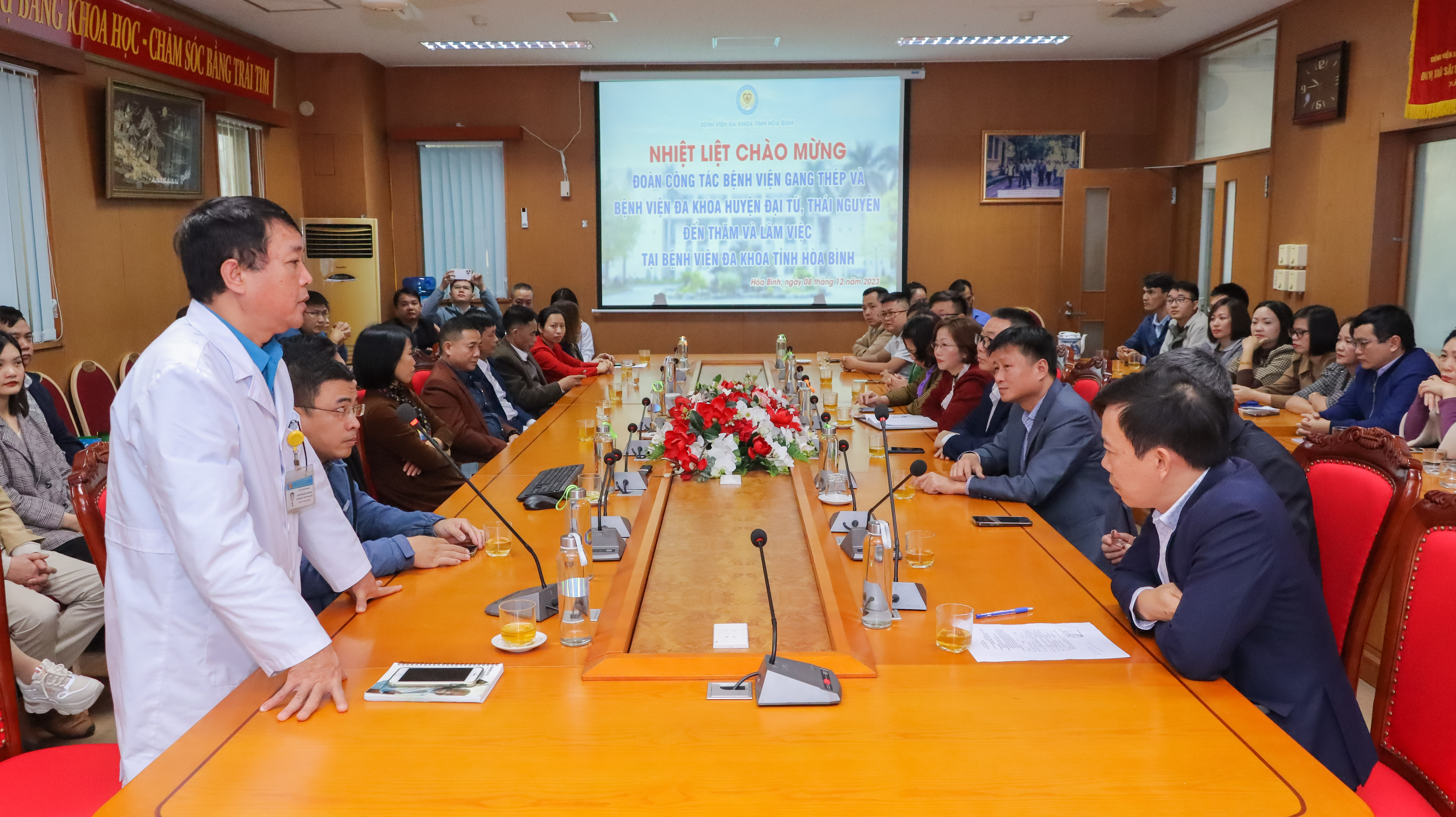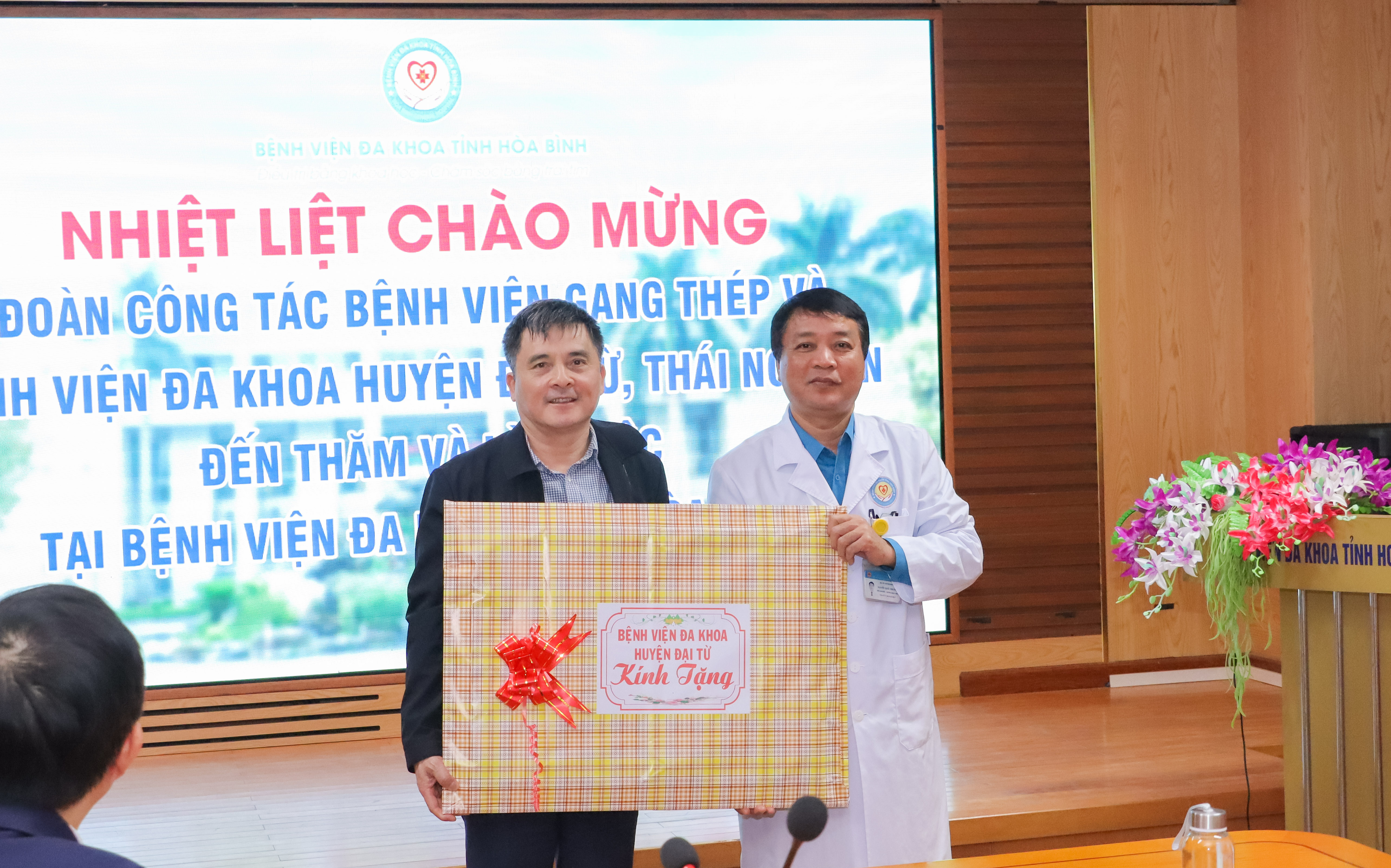 Đoàn công tác Bệnh viện Gang Thép do BSCKII. Nguyễn Hữu Trung, Giám Đốc Bệnh viện làm Trưởng đoàn. Bệnh viện Đa khoa huyện Đại Từ do BSCKII. Cao Đắc Thắng, Giám đốc Bệnh viện làm trưởng đoàn cùng các đồng chí lãnh đạo một số khoa phòng của hai đơn vị. Tiếp đoàn có BSCKII. Nguyễn Quốc Phương, Phó Giám đốc Bệnh viện và các đồng chí lãnh đạo các khoa phòng của Bệnh viện đa khoa tỉnh Hòa Bình.