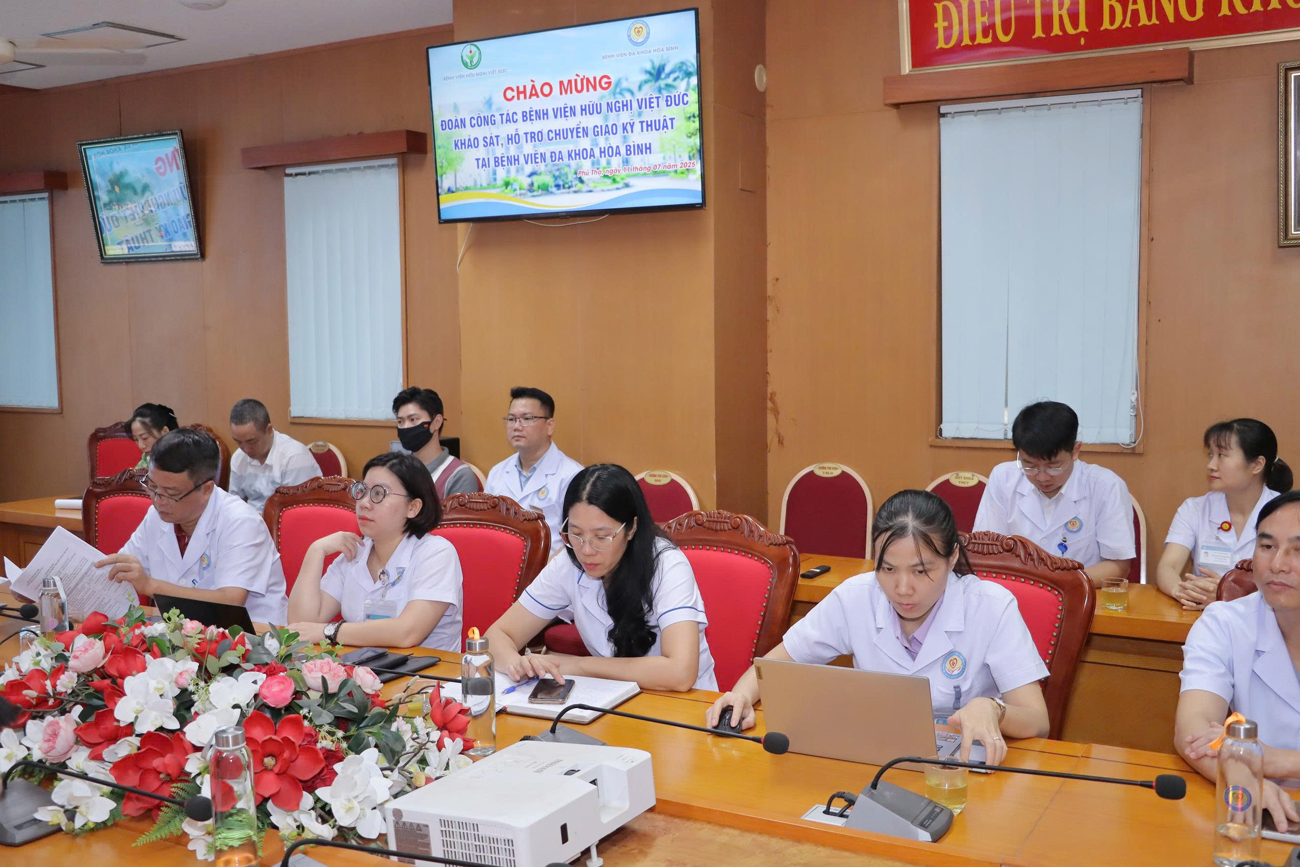 Tại buổi làm việc, đại diện Bệnh viện Đa khoa Hòa Bình đã báo cáo với đoàn công tác về hiện trạng cơ sở vật chất, trang thiết bị, nhu cầu đào tạo và định hướng phát triển chuyên môn. Đoàn cũng đã tham quan trực tiếp các khoa, phòng để khảo sát thực tế, từ đó có những đánh giá, góp ý và định hướng hỗ trợ cụ thể cho từng chuyên ngành.