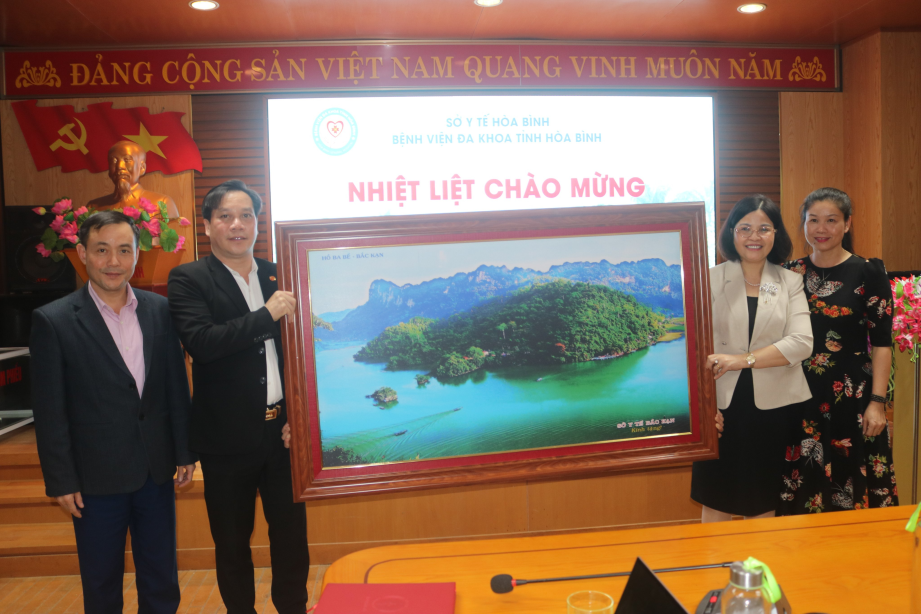 Bệnh viện Đa khoa tỉnh Hoà Bình đón nhận quà tặng lưu niệm từ Đoàn công tác ngành Y tế tỉnh Bắc Kạn