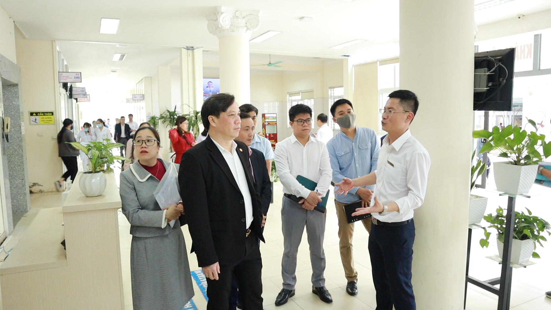 BS.CKII Tạc Văn Nam, Tỉnh ủy viên, Giám đốc Sở Y tế tỉnh Bắc Kạn cùng các thành viên đoàn tham quan việc triển khai Hồ sơ bệnh án điện tử tại khoa Khám bệnh, Bệnh viện Đa khoa tỉnh Hòa Bình