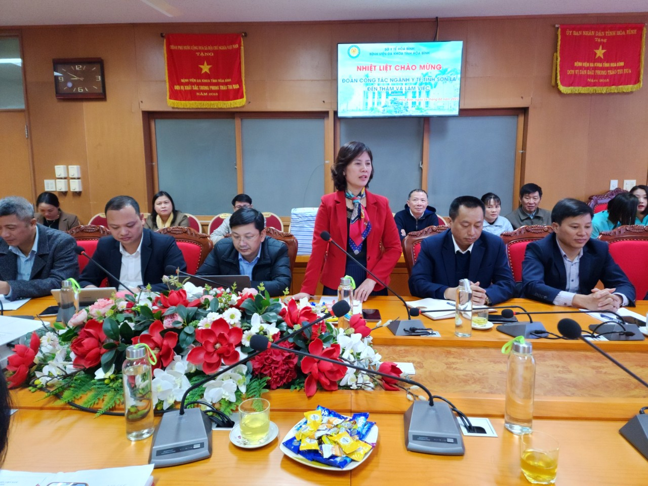 Ngày 16/2/2023, Đoàn công tác ngành Y tế tỉnh Sơn La gồm Sở Y tế Sơn La, Bệnh viện Đa khoa tỉnh Sơn La và Viettel Sơn La do Th.S, BS Trần Thanh Bình, Phó Giám đốc Sở Y tế Sơn La làm trưởng đoàn đã đến tham và trao đổi kinh nghiệm Bệnh án điện tử và Bệnh viện thông minh tại Bệnh viện Đa khoa tỉnh Hoà Bình. Tiếp đoàn có TS.BS Trương Như Hiển, Phó Giám đốc Bệnh viện; BS.CKII Nguyễn Quốc Phương, Phó Giám đốc Bệnh viện cùng lãnh đạo một số khoa, phòng.
