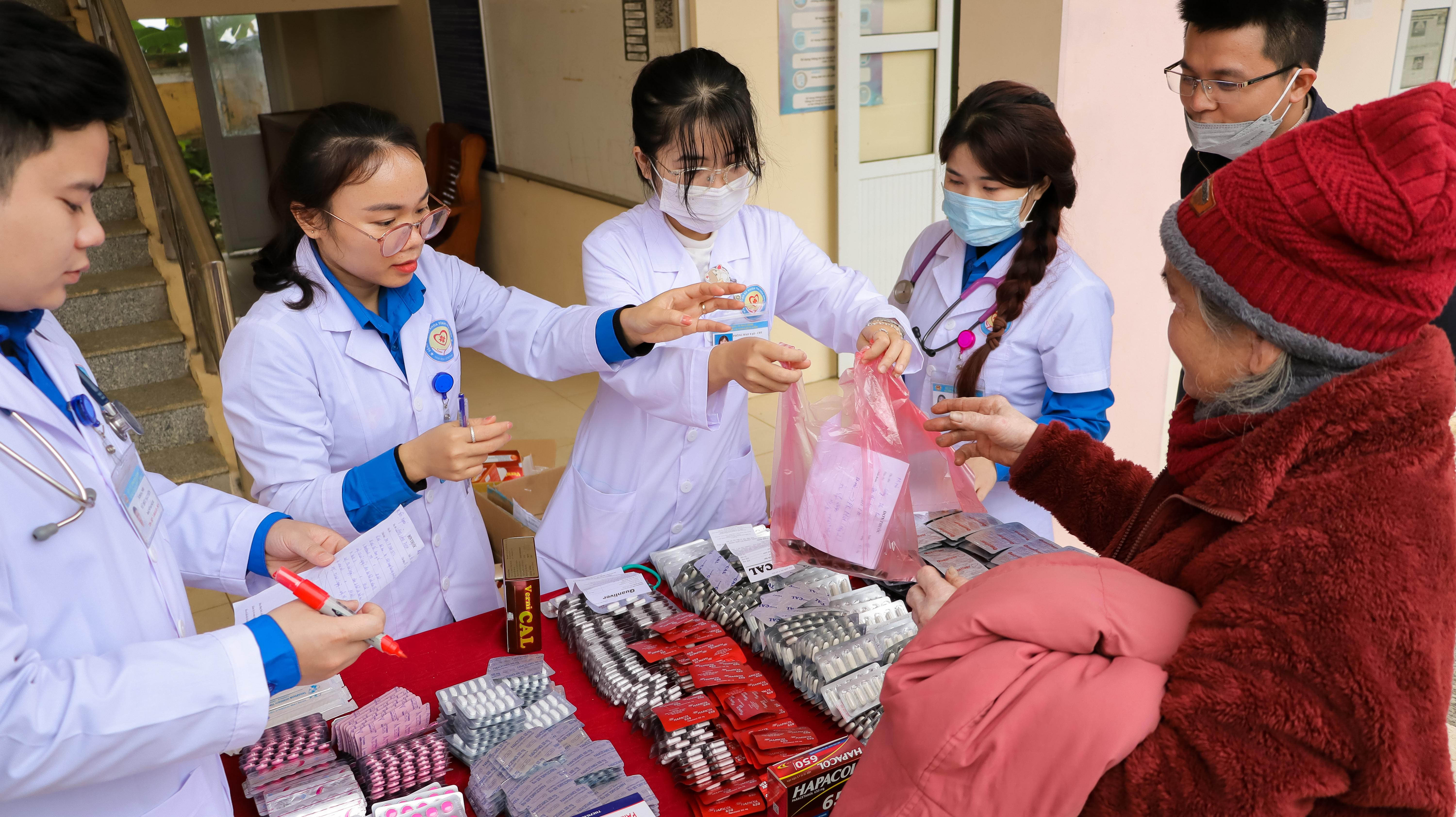 Phát thuốc miễn phí cho người dân đến khám