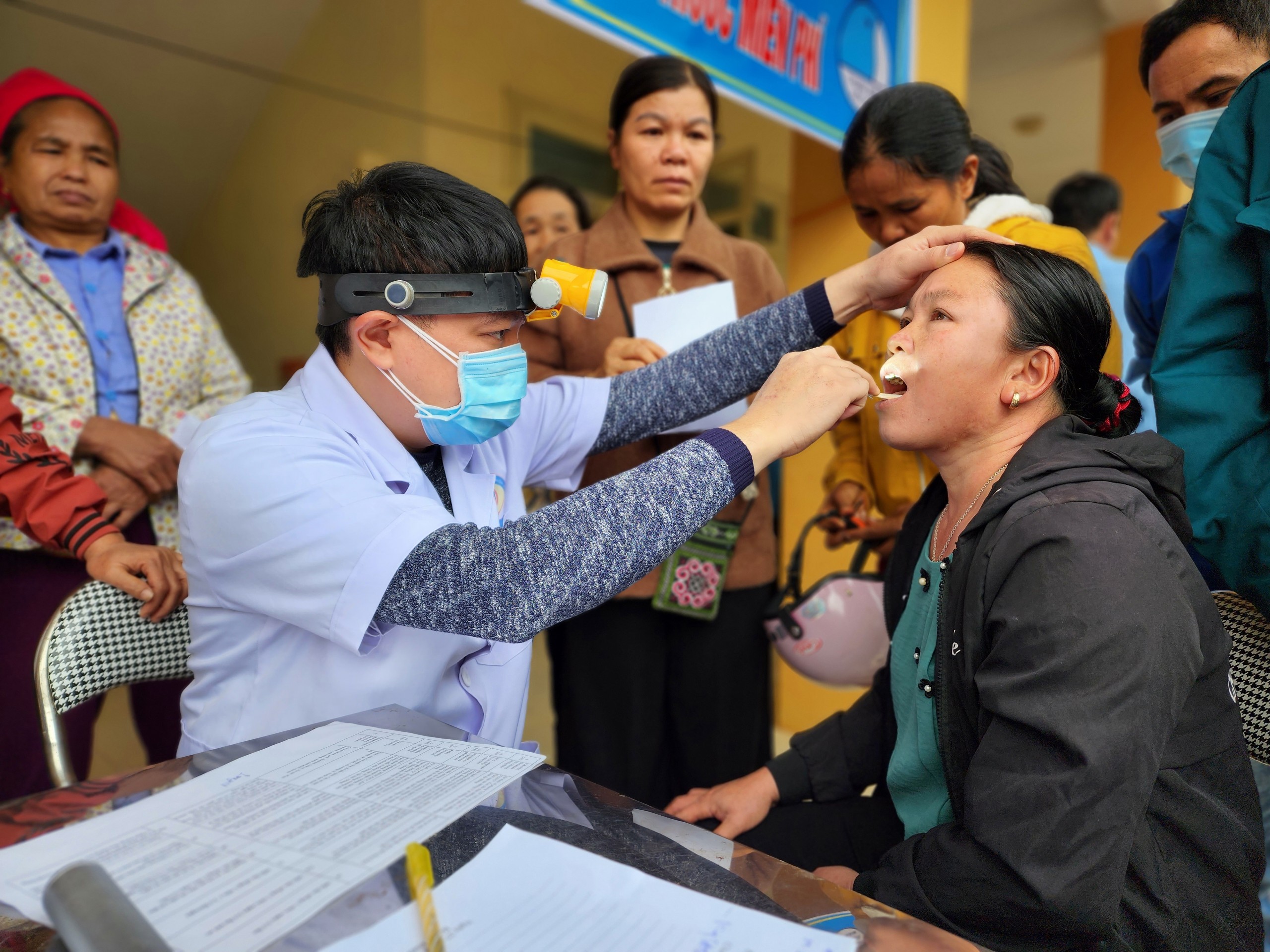 Các bộ y tế Đoàn thanh niên Bệnh viện tích cực khám cho người dân xã Cun Pheo