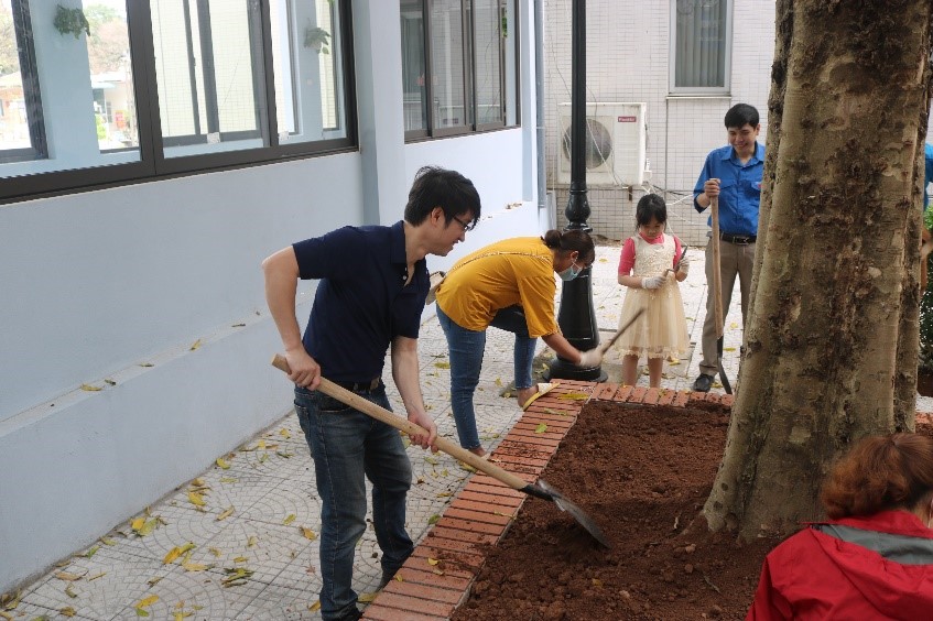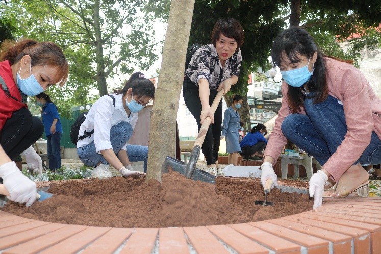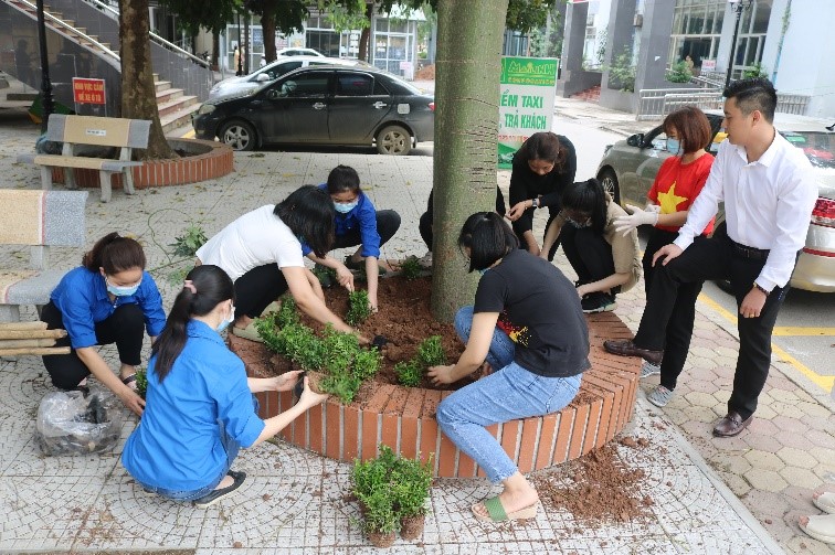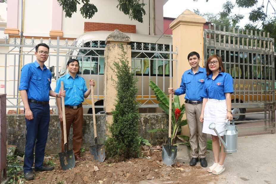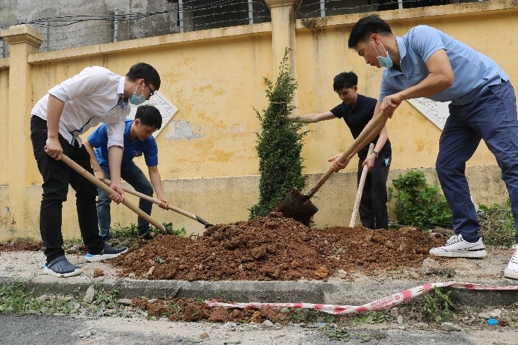 Ngay sau lễ phát động, các đoàn viên ra quân trồng cây trong khuôn viên Bệnh viện