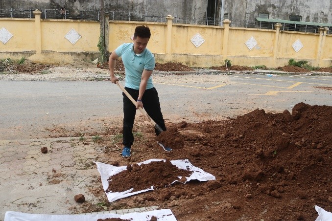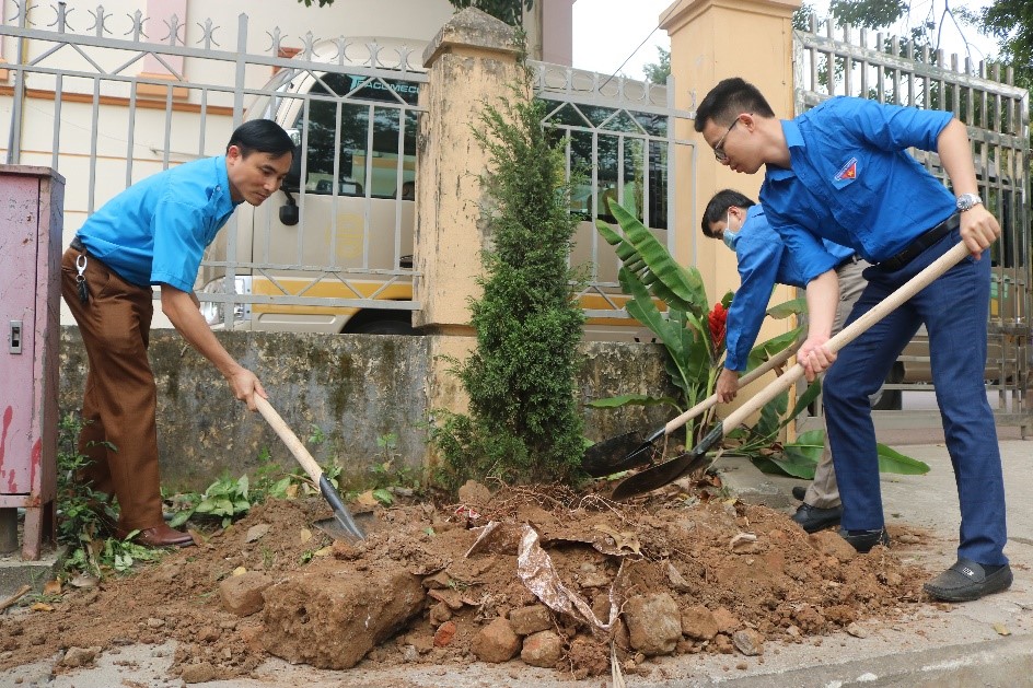 Không khí buổi trồng cây thêm sôi nổi bởi tinh thần thanh niên tiên phong, dám nghĩ, dám làm, không ngại khó, ngại khổ