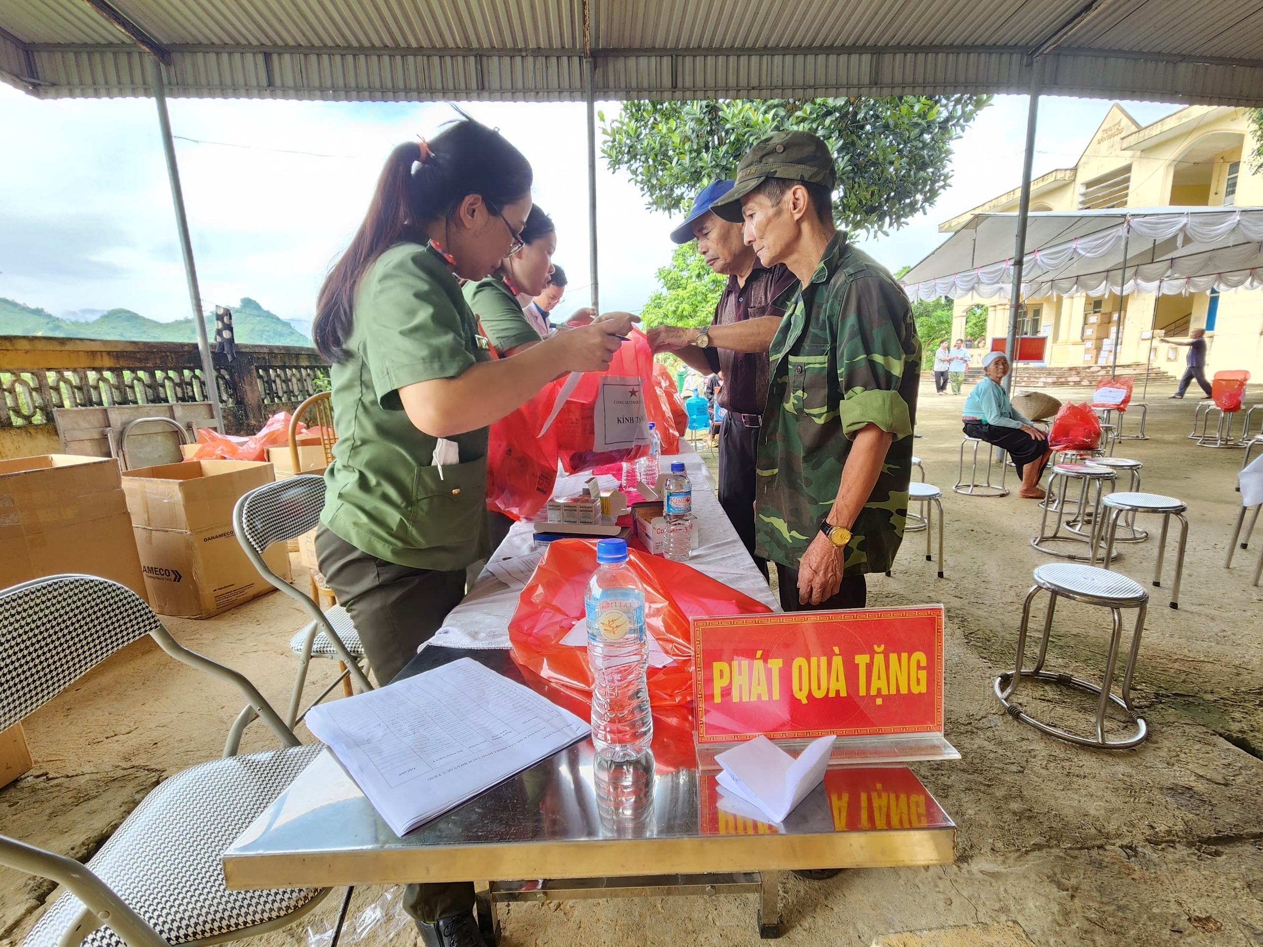 Khu vực cấp phát thuốc và tặng quà cho người dân