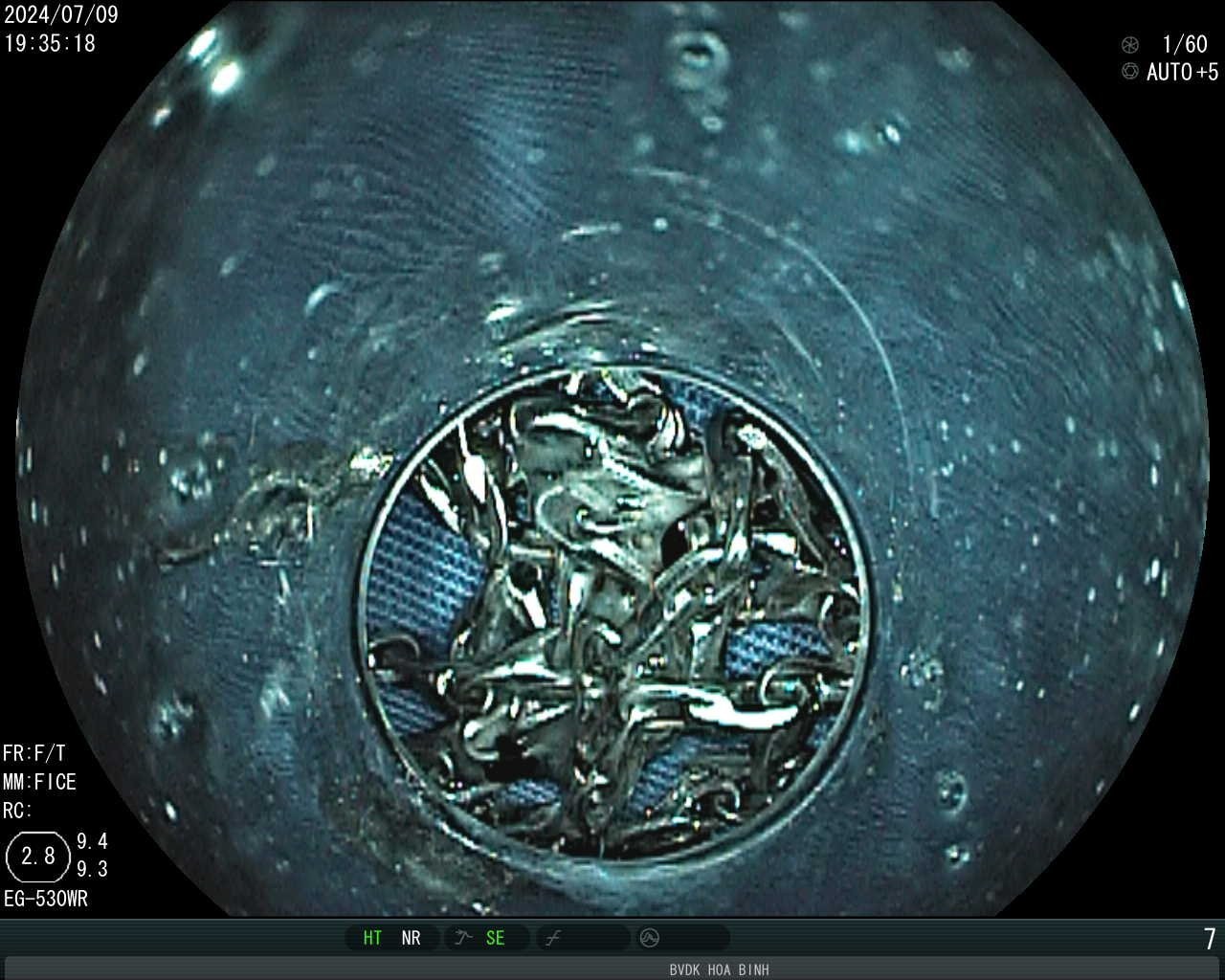 Bằng phương pháp nghiệp vụ, để đảm bảo an toàn cho người bệnh, giúp không đau và tránh co thắt thực quản, nôn khi soi, bác sĩ quyết định tiến hành gây mê tĩnh mạch và nội soi can thiệp gắp dị vật cho bệnh nhi. Chỉ trong chưa đầy 10 phút, bác sĩ đã gắp thành công được dị vật là một sợi dây chuyền tư dạ dày bệnh nhi ra ngoài. Sau thủ thuật 30 phút, bệnh nhi hồi tỉnh và trở lại sinh hoạt bình thường, không còn đau, không có biến chứng.