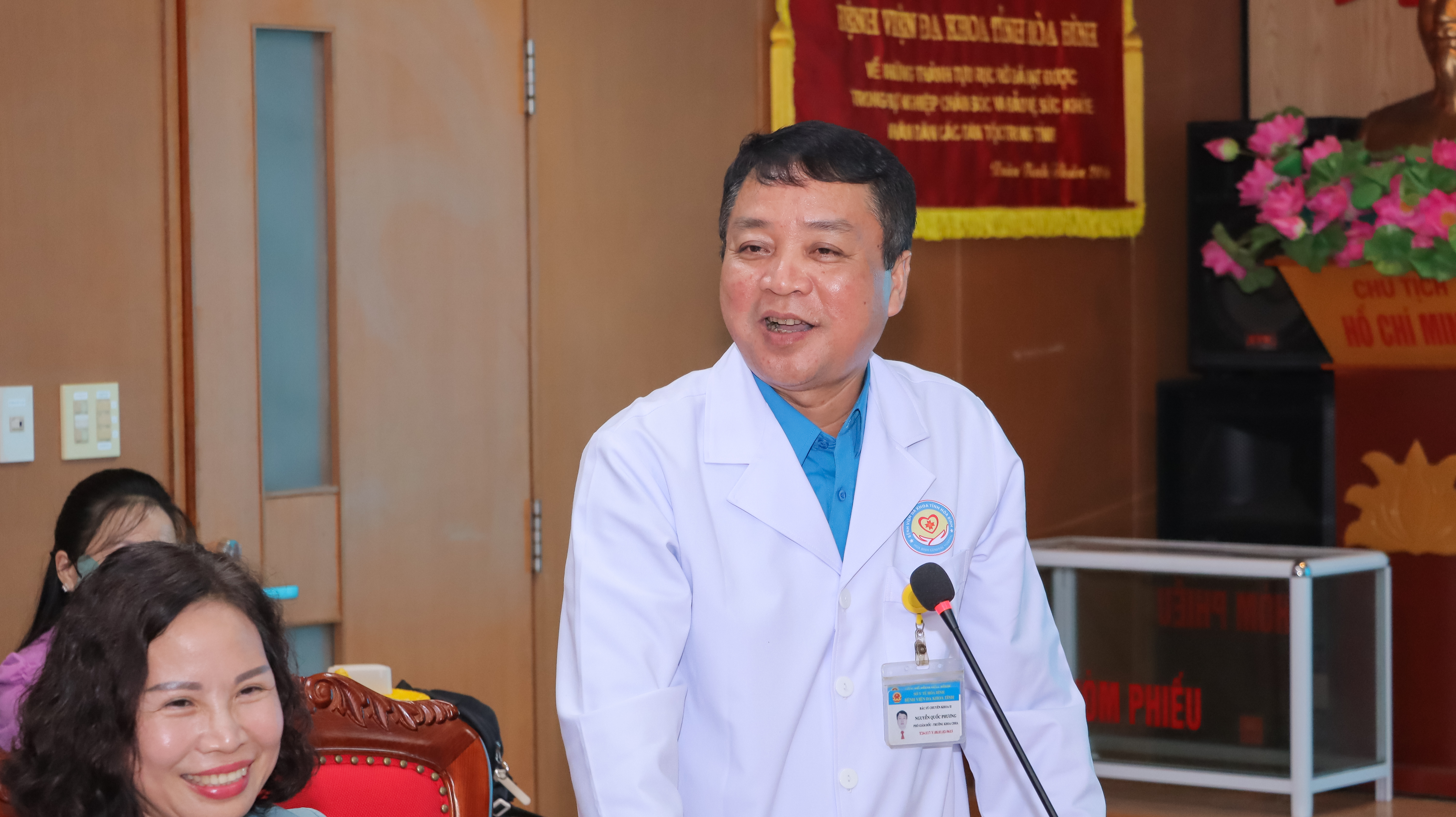 Ngày 09/01/2024, Bệnh viện Đa khoa tỉnh Hoà Bình tổ chức gặp mặt viên chức mới tuyển dụng năm 2023. Thầy thuốc ưu tú, TS.BS Nguyễn Hoàng Diệu, Bí thư Đảng uỷ, Giám đốc Bệnh viện dự và chủ trì buổi gặp mặt. Tham dự còn có các đồng chí trong Ban Giám đốc, lãnh đạo các khoa, phòng, các đoàn thể và 58 viên chức mới trúng tuyển trong đợt tuyển dụng.