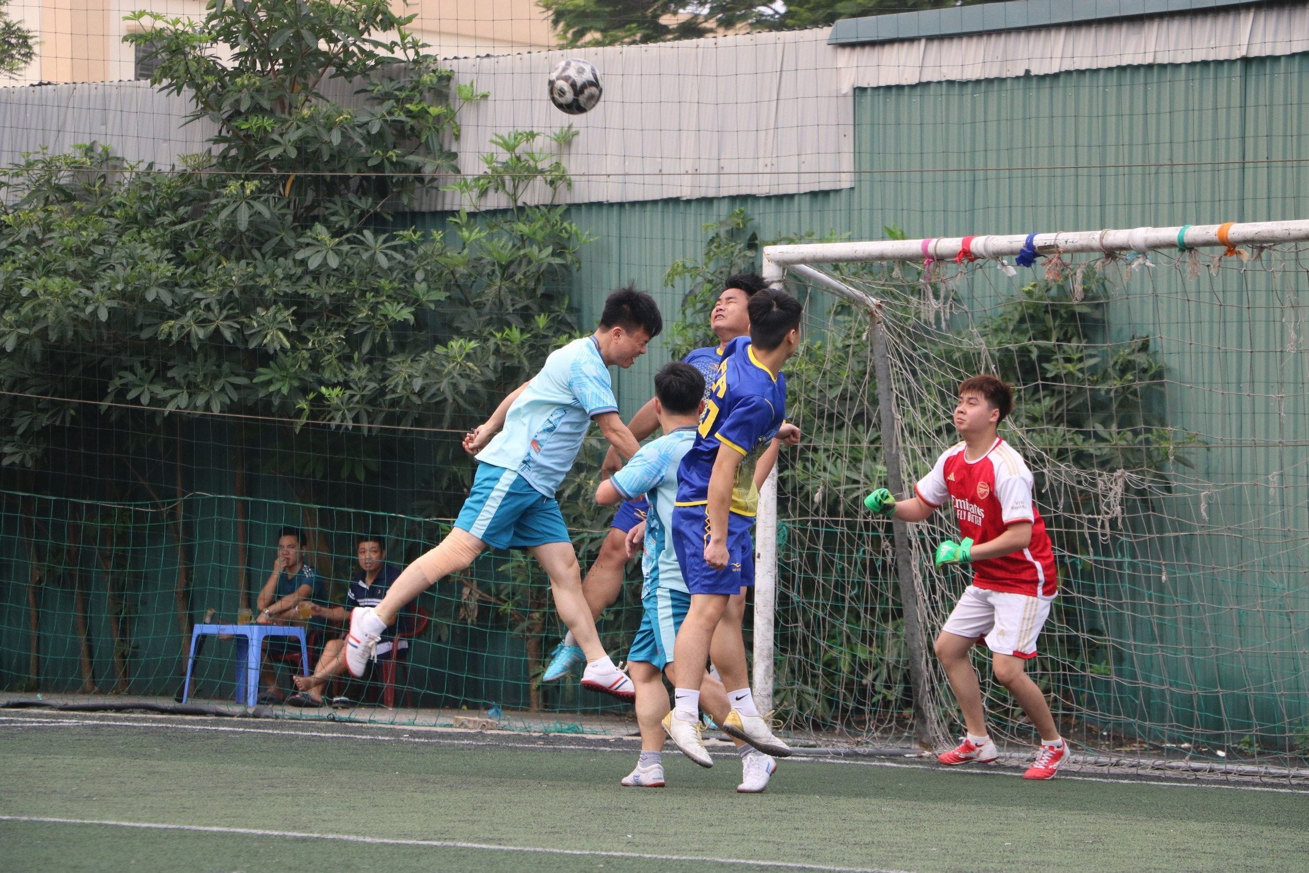 Một pha đánh đầu nguy hiểm TS.BS Trương Như Hiển trong màu áo đội Ngoại 2 tạo ra về phía khung thành thủ môn khối Nội – Liên khoa
