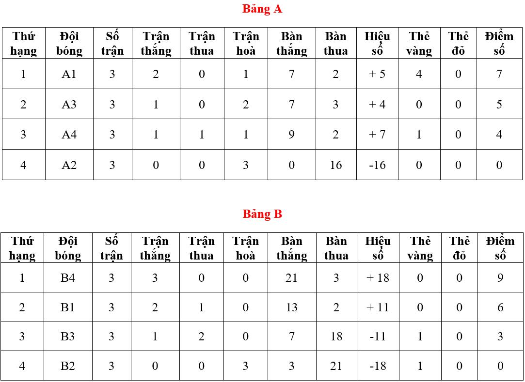 BẢNG A: CUỘC ĐUA TAM MÃ VÀ “VỊ KHÁCH KHÔNG MỜI” Bảng A diễn ra đầy kịch tính khi ba đội cạnh tranh quyết liệt cho suất đi tiếp, trong khi một đội lại đóng vai “bia tập bắn” cho phần còn lại.